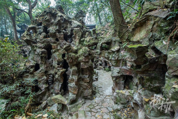 在整个园林大改造中,最值得给“五星好评”的,是一个假山群,它是西湖边目前规模最大的假山洞景。这次黄龙洞升级后重新开园,这处假山群也时隔多年再次对外开放。