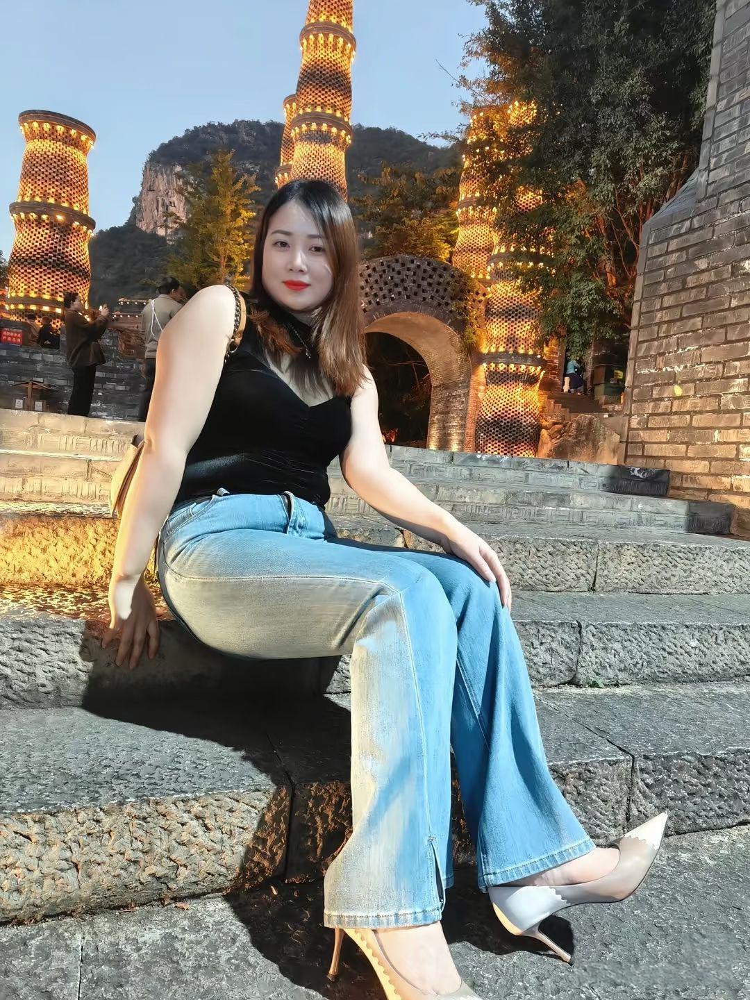 夜晚的灯光与古塔相映成趣,我坐在石阶上,享受这宁静的时光。🌃✨