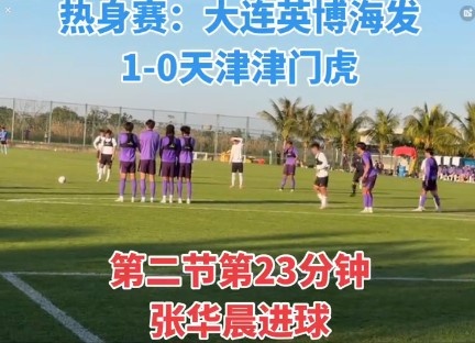 直播吧1月10日讯北京时间1月10日,记者丁旭在社媒报道大连英博在热身赛中以1-0击败天津津门虎,张华晨罚球弧前沿任意球直接破门打进比赛唯一进球。