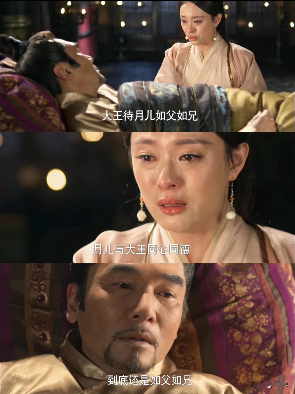 哭死了,好心疼秦王,看得心都跟着碎了 “此刻,寡人就要走了” “到底还是如兄如父” “丫头好想再背你一次” 大王的每一句都戳中泪点..... 《芈月传》中秦王和芈月的生离死别,太痛了太痛了…… 那一声“丫头”,唤尽了半生守护。 他叫她“丫头”,这一声里,藏了多少未能言明的怜惜、教导与成全。 从初见的戒备,到最后的托付,他给了她最坚实的依靠,也把最脆弱的终章留给了她。 赢驷不是完美的爱人,却是半月命运中那座沉默的山——他倒下时,她的世界才真正迎来暴风雨。 “如父如兄”的背后,是成全与遗憾的交织。 他是君王,是长辈,是她权谋的启蒙者,也是她情感的归途之一。 这份克制而深沉的情感,比热烈告白更让人心碎。 他背得起江山,背得起她,却背不动时间。 最后的“想再背你一次”,是一个强者最温柔的无奈——原来君王之爱,是连一次平凡的相依都成了奢侈。 有些人的出现,就是为了在你生命里留下不可替代的烙印,然后转身离去。 秦王之于芈月,便是这样一座远山——你翻越之后,才明白他的高度,但也只能在回望时泪流满面。