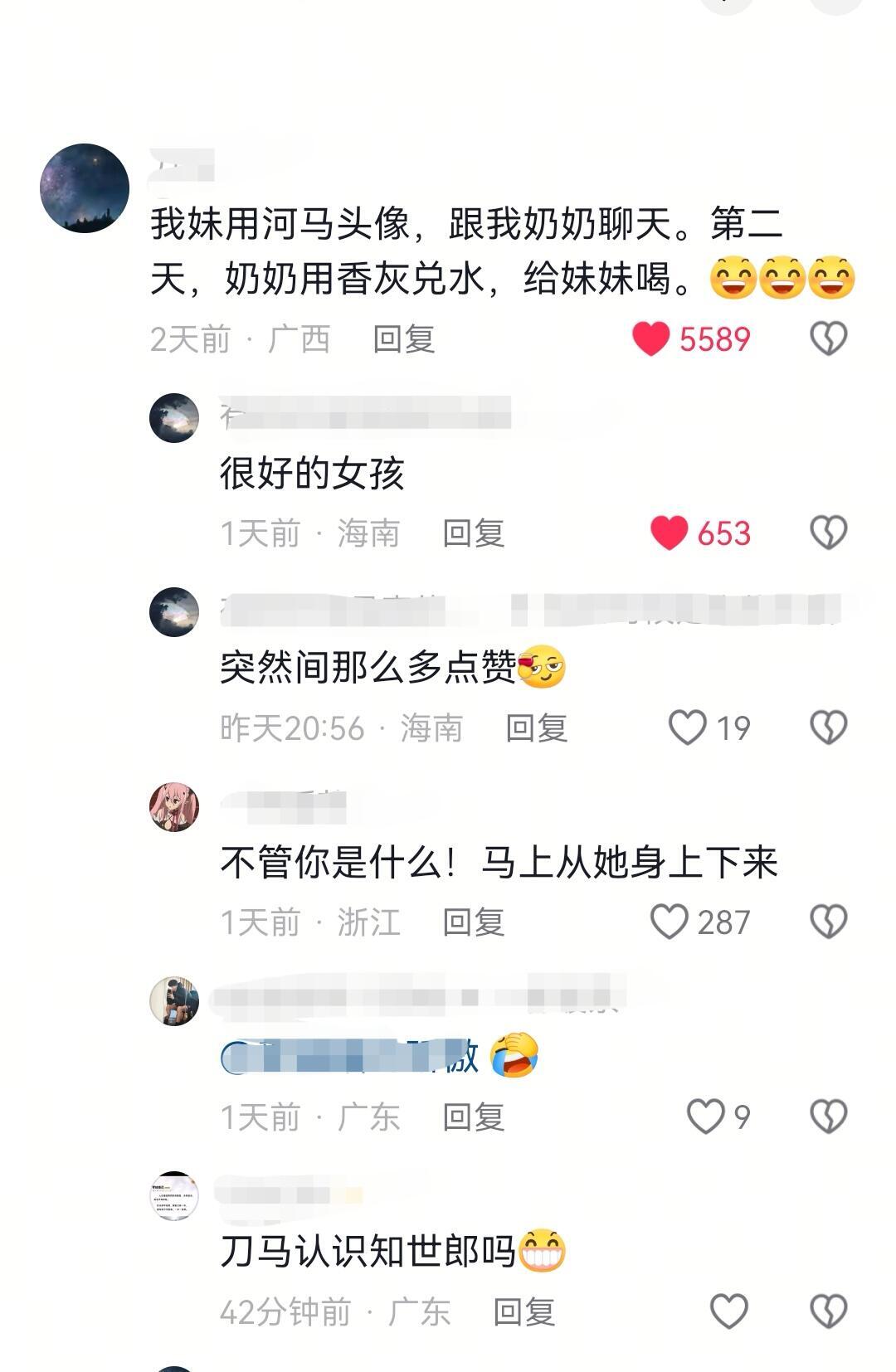 我妹用河马头像,跟我奶奶聊天。第二天,奶奶用香灰兑水,给妹妹喝