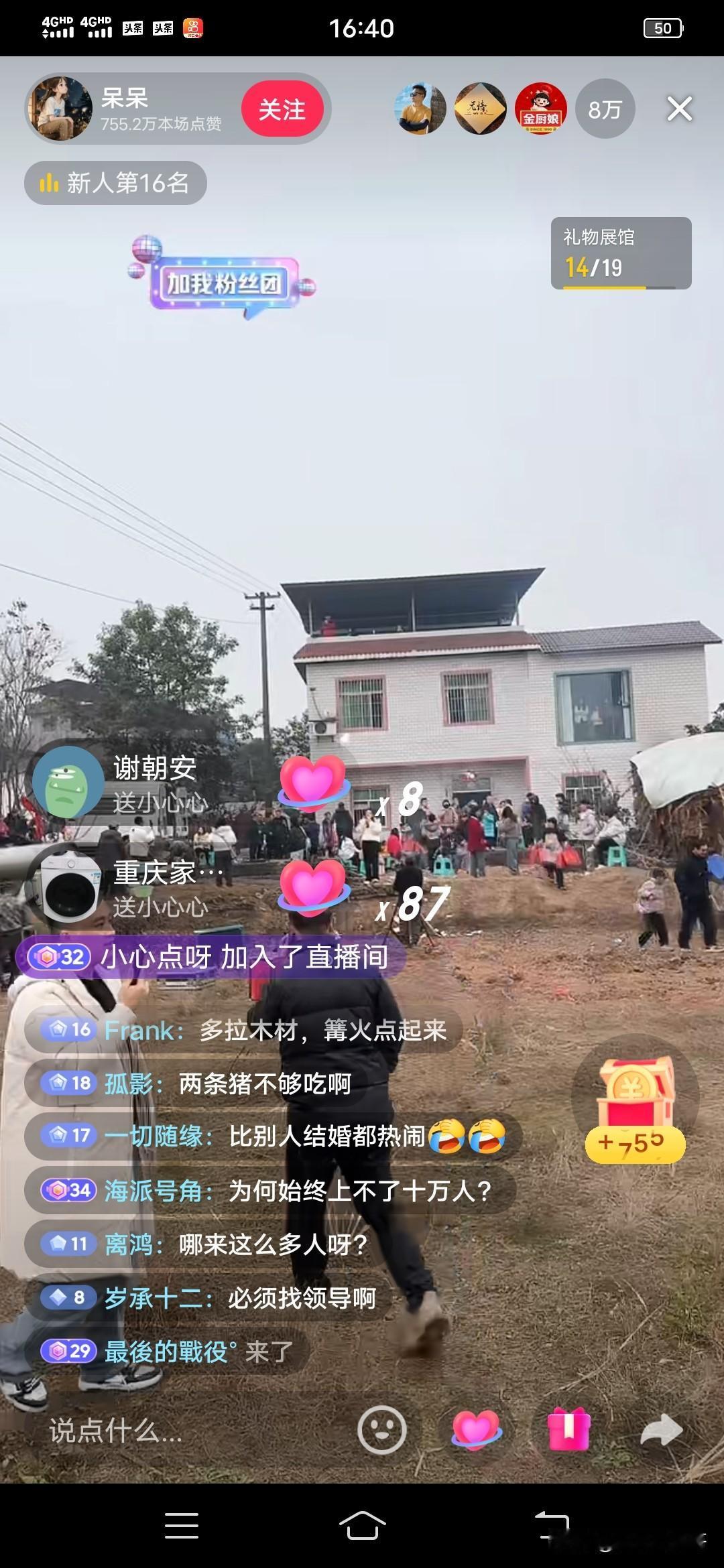 太有趣了 , 重庆合川呆呆妹元月11号杀年猪,突然心血来潮,网上召集网友去她家帮按猪, 因为她老爸年纪大了,怕她爸爸按不住猪, 还邀请网友去她家吃杀猪饭,想去的马上在评论区接龙报名 。 呆呆妹说她主要喜欢热闹, 希望家门口 停满车, 最好比结婚的场面还要多。 让她在村里扬眉吐气一回有排面! 呆呆妹计划好了,早上5点烧水,6点杀猪, 晚了怕中午吃不成杀猪饭, 希望要按猪的还有来吃杀猪饭的都要早一点来。 呆呆妹的初衷就是图个热闹,以为浏览量不会很大,没想到视频一发出马上火了 ,评论区接龙想来按猪的要来吃杀猪饭的多得很,五百人的群聊一下子加了五个。 这届网友也太热情太喜欢热闹了,呆呆妹呆了,这才知道自己闯下大祸。但是重庆人耿直, 不能拉稀摆带 ,说出去的话就要算数,担心到时招呼客人嗓子不够用,专门去买了一个大喇叭 ! 11月1日,天还没亮,呆呆妹家门口的乡村水泥公路上,从四面八方赶来的网友的车排成了长龙 , 这场面,这排场 , 如呆呆妹所愿,扬眉吐气了 。 网友们考虑到人太多,担心呆呆妹招待不过来,自发的都带了礼物 ,有的买了饮料,有的买了菜, 就当野炊,聚个餐 ! 呆呆妹家的院坝里,摆桌椅的,烧火做饭的,切菜的, 现场开直播的 ,聊天的, 现场好不热闹 。 看那场景我都想去 。 这不就是人们向往的年味浓浓的盛事吗 ? 呆呆妹,好样的。 有谁知道呆呆妹家网友们吃了多少头猪。