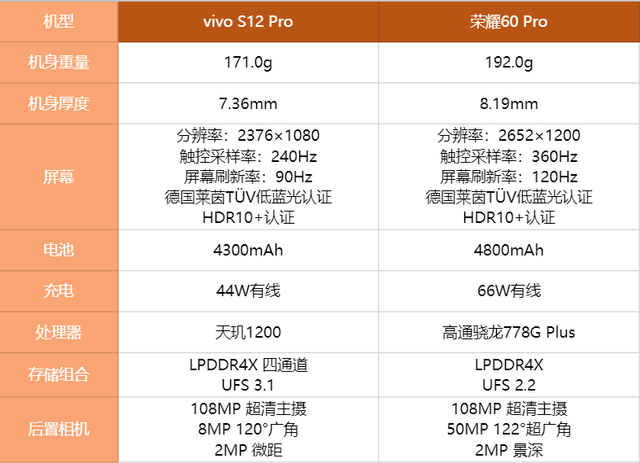 (上为荣耀60 Pro,下为vivo S12 Pro)