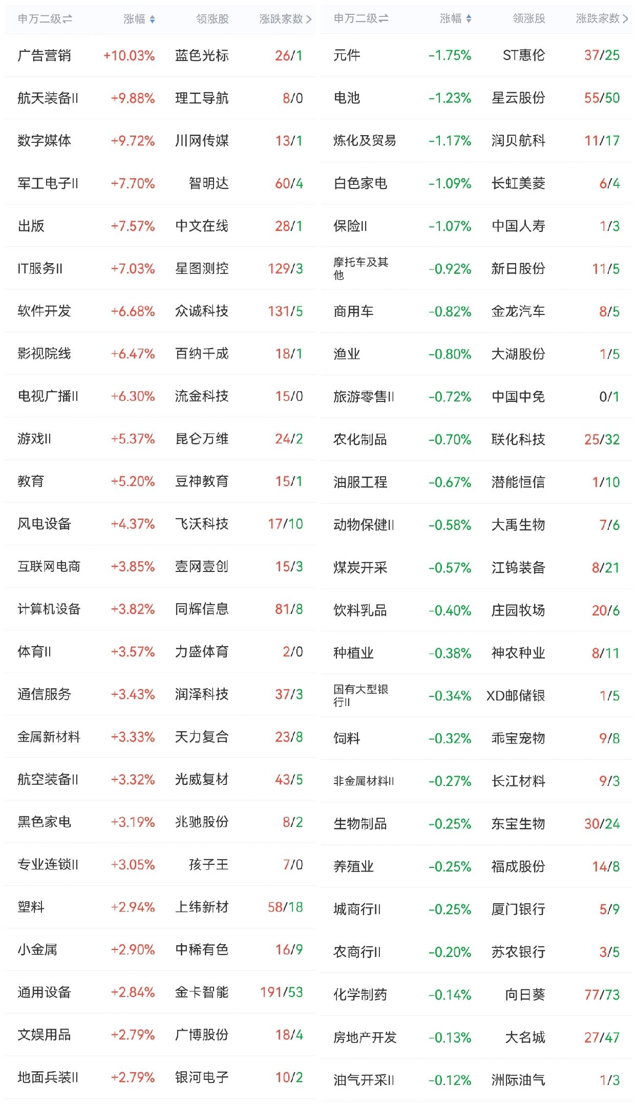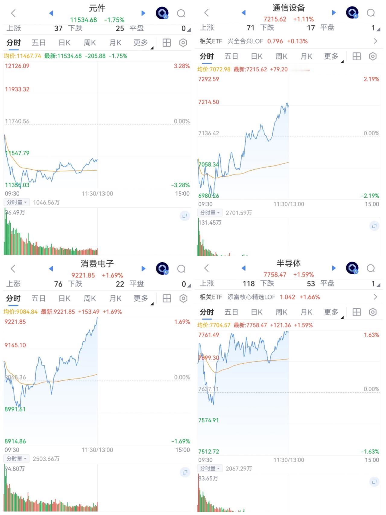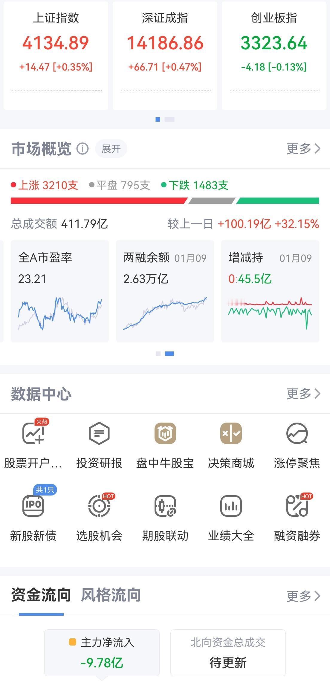 午盘印象(1月12日) 买入拥挤 调整无力 外围:美股上涨 英伟达续跌 隐忧继续 内股:航天军工领跑暴走 热度点燃全场 一、三大股指开盘红绿,创业板承压: 指数稍强,震荡清洗获利盘 个股开盘涨平跌比率58%:14%:27%。 个股开盘强势(+31 Vs -8个百分点),远胜上个交易日 二、指数震荡上扬,调整不下去: CPO和电池低开,创业板弱势,又被航天带动探底回升 2.3万亿交易量,指数新高不断 三、涨跌幅榜: 航天引领科技,红利调整,非银分化 跌幅前列:大金融、电池、元件 涨幅前列:AI应用、航天军工、信安 四、开盘和午盘: 开盘:沪+0.35%、深+0.47%、创-0.13%。 午盘:沪+0.75%、深+0.31%、创+1.17%。 开盘创业板稍承压,指数攀升中 五、午盘个股上涨69%,接近七成,与昨日涨跌差距(+41 Vs -11个百分点);与开盘相比,涨跌差距扩大,上涨更多。 净流出-173亿,相比昨日,出逃稍减缓 六、沪深两市成交量午盘23,069亿,上个交易日20,614亿,同比量能扩张接近2,500亿,放量上涨。 七、指数连创多年新高,量能已狂热 震荡上扬,半日2.3万亿,买入汹涌 连续5天融资额大幅净增加,两融余额已至2.63万亿,谨慎谨慎 午后两种情形: 1、平行震荡:时间换空间,缓步消化获利盘,红包行情继续。 2、震荡回调:量能暴涨,谨防跳水,时空加速统一,慢牛格局不变。 (图片源自网络侵权告知删除)