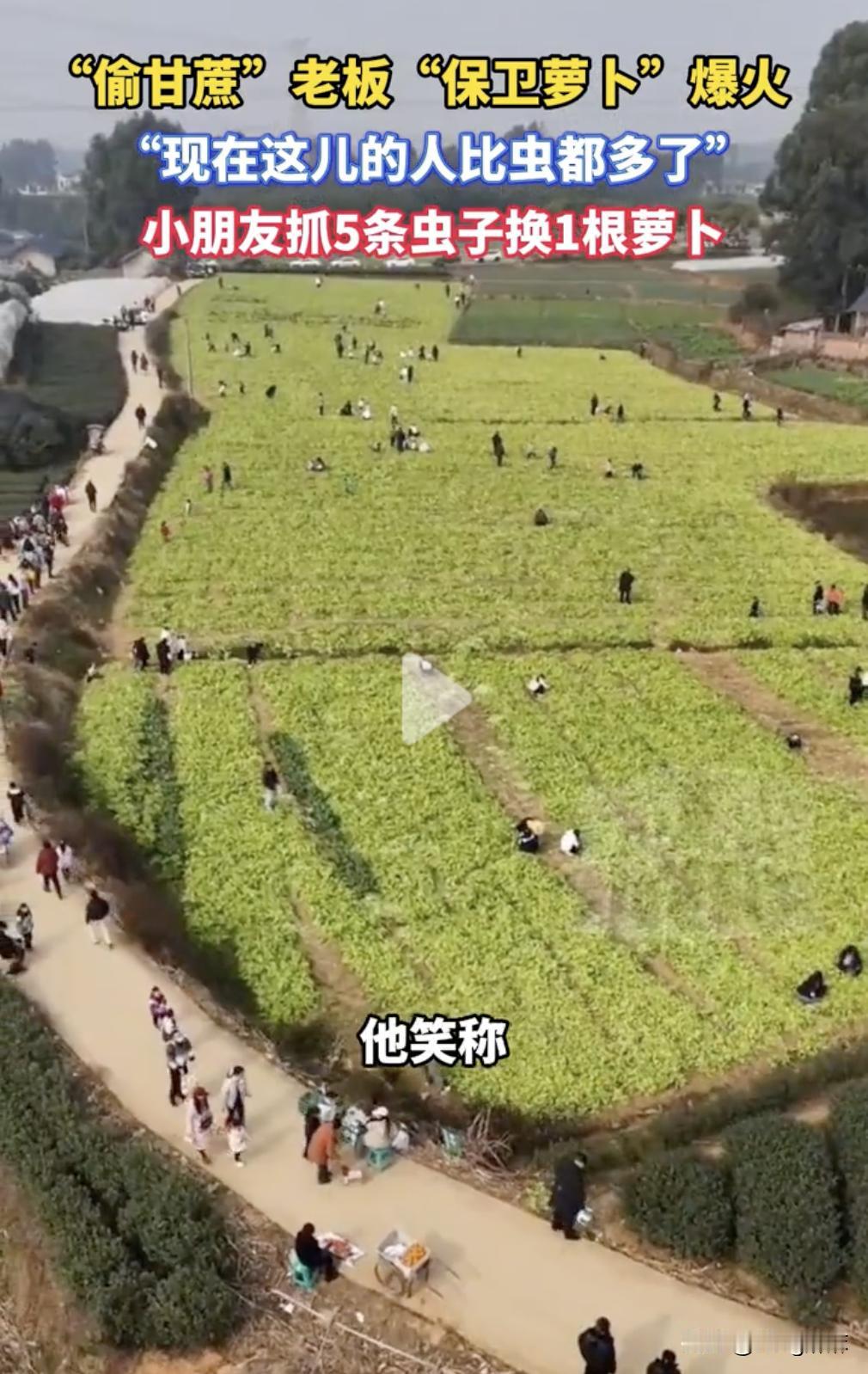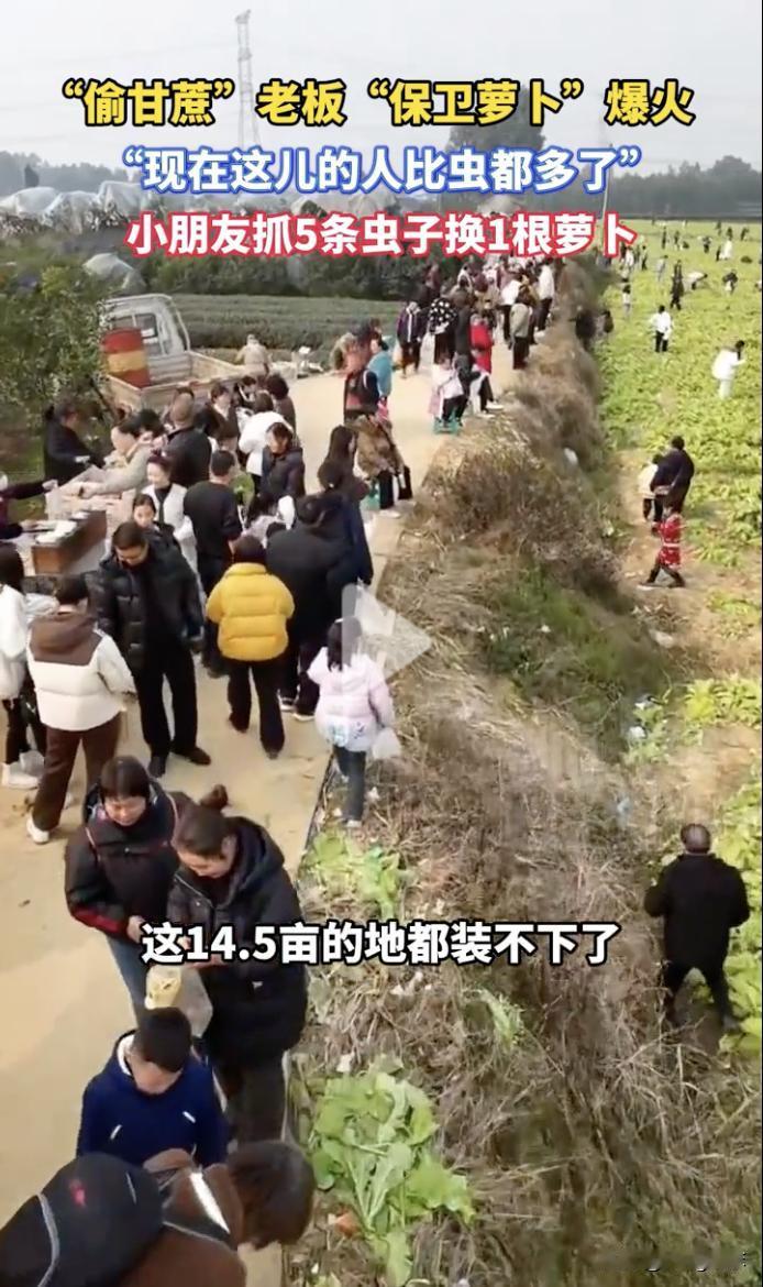 “真是太聪明了!”最近,四川偷甘蔗老板又推出了新活动“保卫萝卜”,小朋友抓5条虫可以换一根萝卜,大人只要花10元买一个袋子,萝卜随便拔随便装。 因为活动新奇有趣,引发的众多网友关注,很多人慕名前往老板的萝卜地,14.5亩地萝卜地里人员爆满,都快要装不下了,老板也是笑称:现在萝卜地里人比虫多。估计萝卜很快也会被卖光了。 不得不说这个老板真是太聪明了,从“偷甘蔗”到“保卫萝卜”,既保护了甘蔗和萝卜不被偷、不被虫吃,又解决了甘蔗和萝卜的销售难题,而且还给小朋友和广大网友们提供了新奇有趣的体验,真是一举三得。 现在经常看到很多人辛辛苦苦种出的农产品,最后却因为卖不出而不得不烂在地里,而这位老板就找到了完美的解决方案,通过新奇的创意解决了农产品不好卖的难题。 这种新型营销方式,既给城市里的大人和孩子们提供了有趣的野外活动的乐趣,又可以不花人工和运费就把农产品销售出去,可谓是互惠互利,乐在其中。