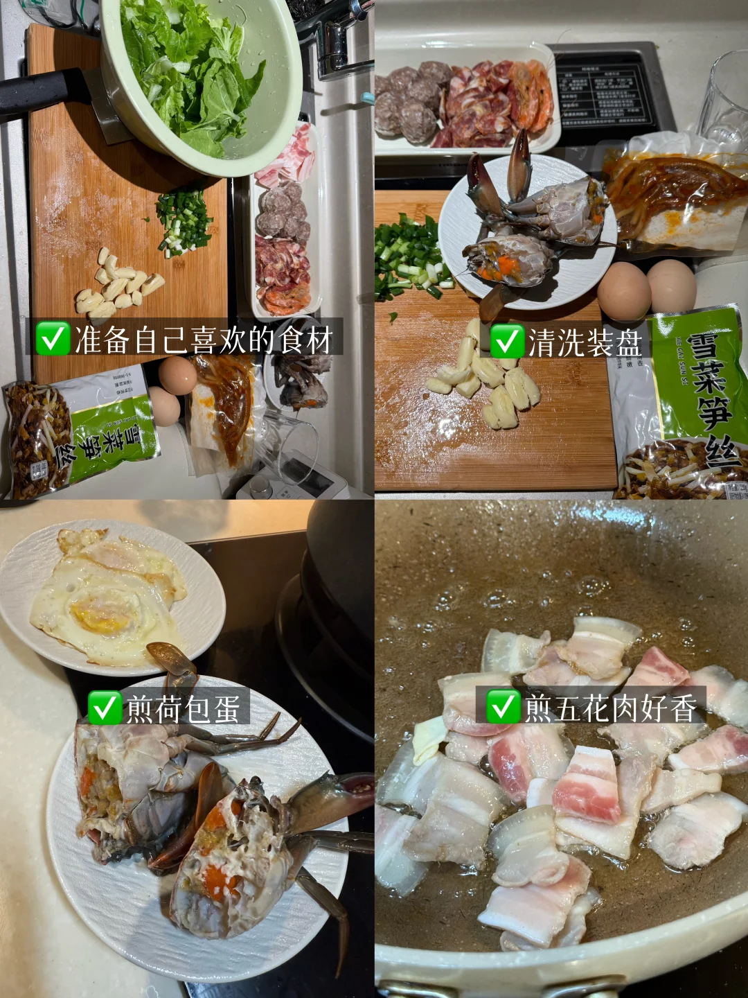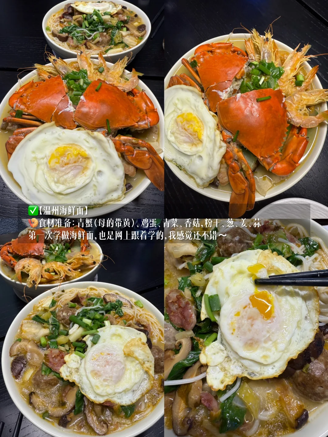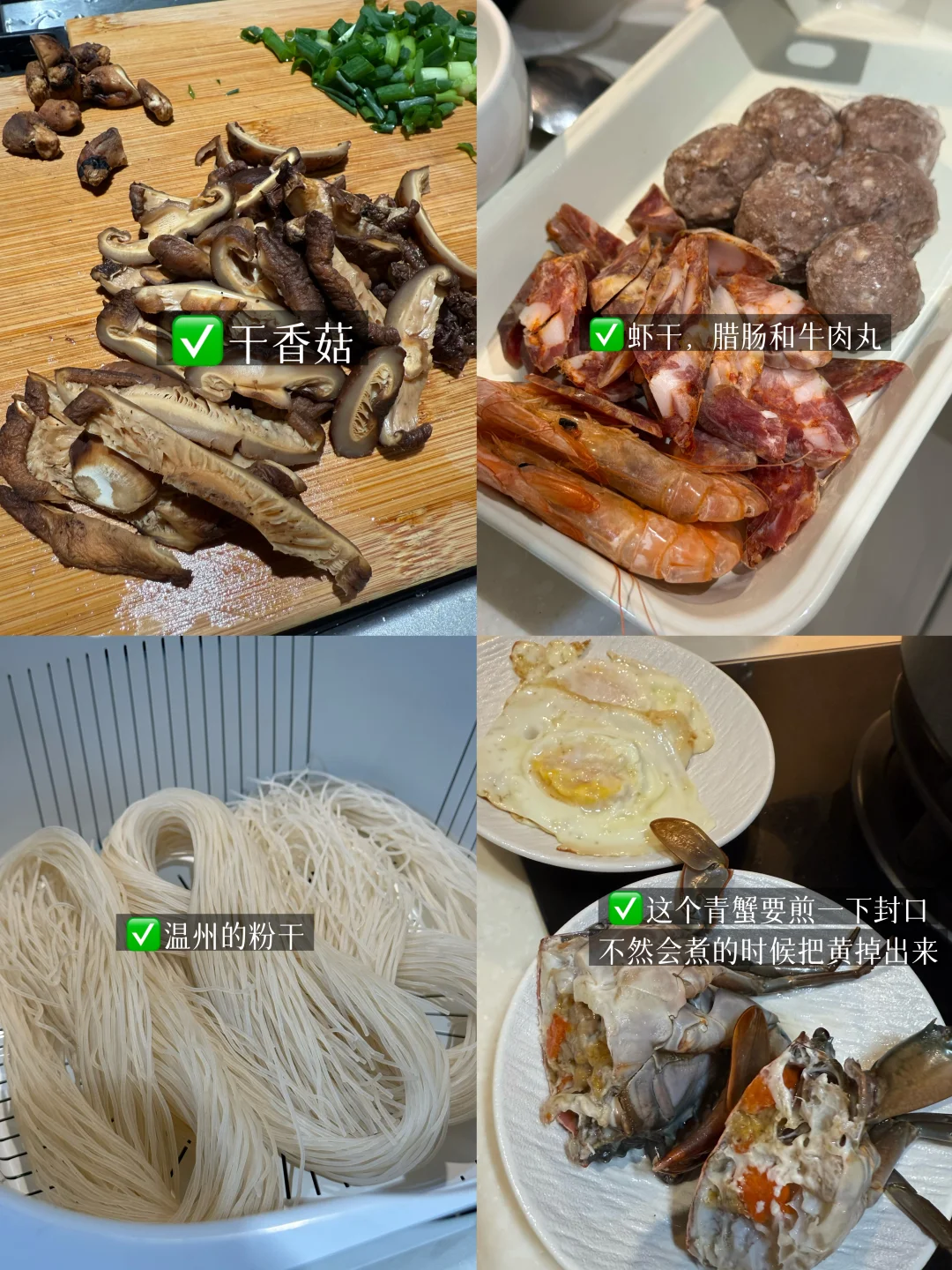 🍤食材准备:青蟹(母的带黄)、鸡蛋、青菜、香菇,粉干、葱、姜、蒜