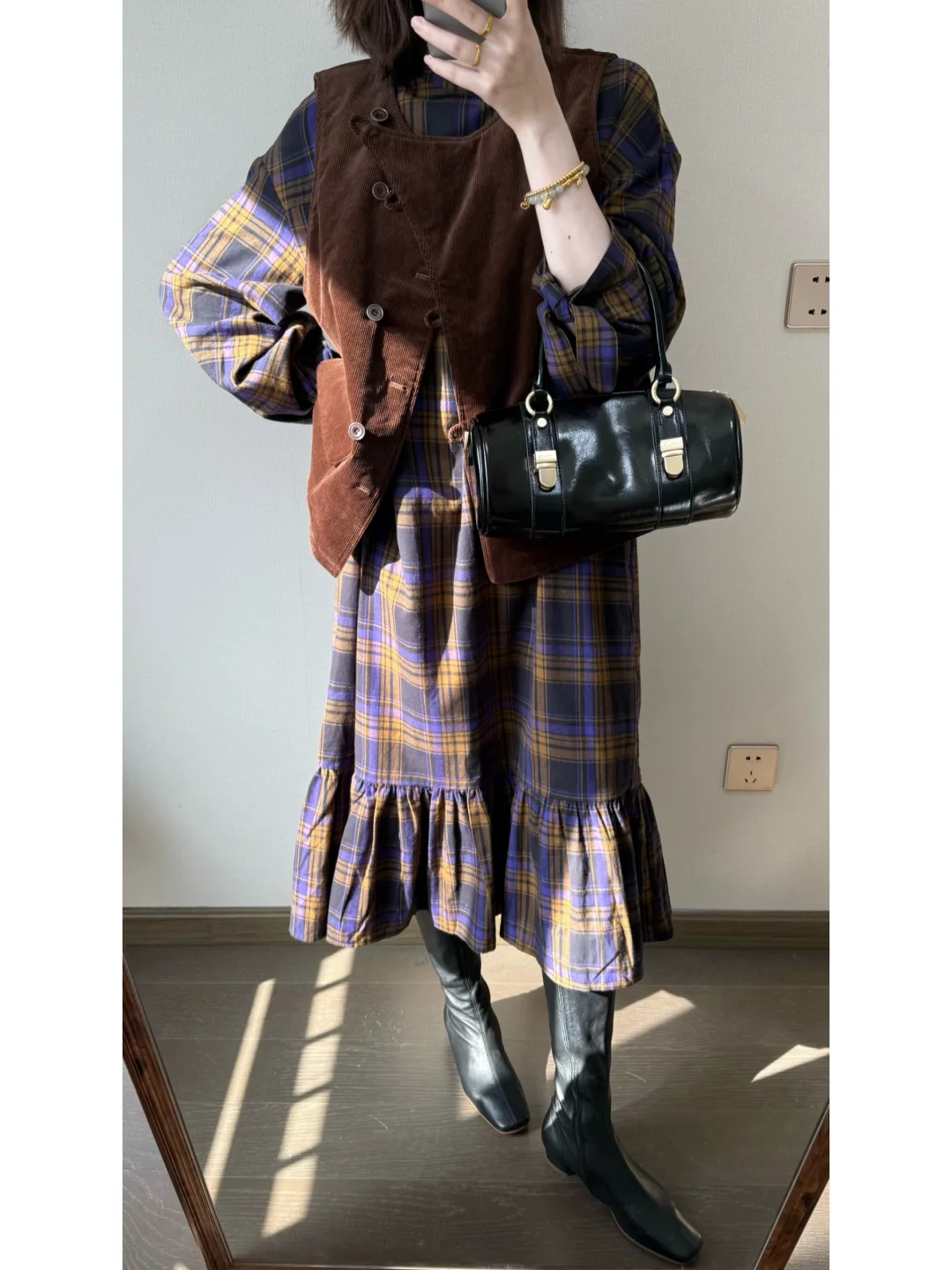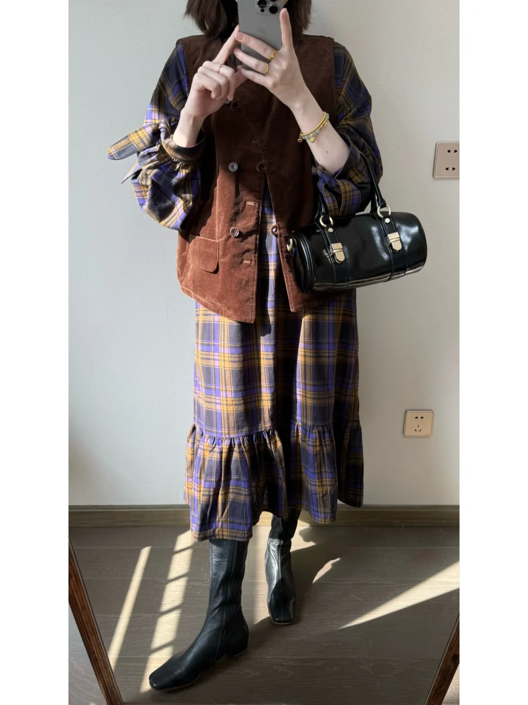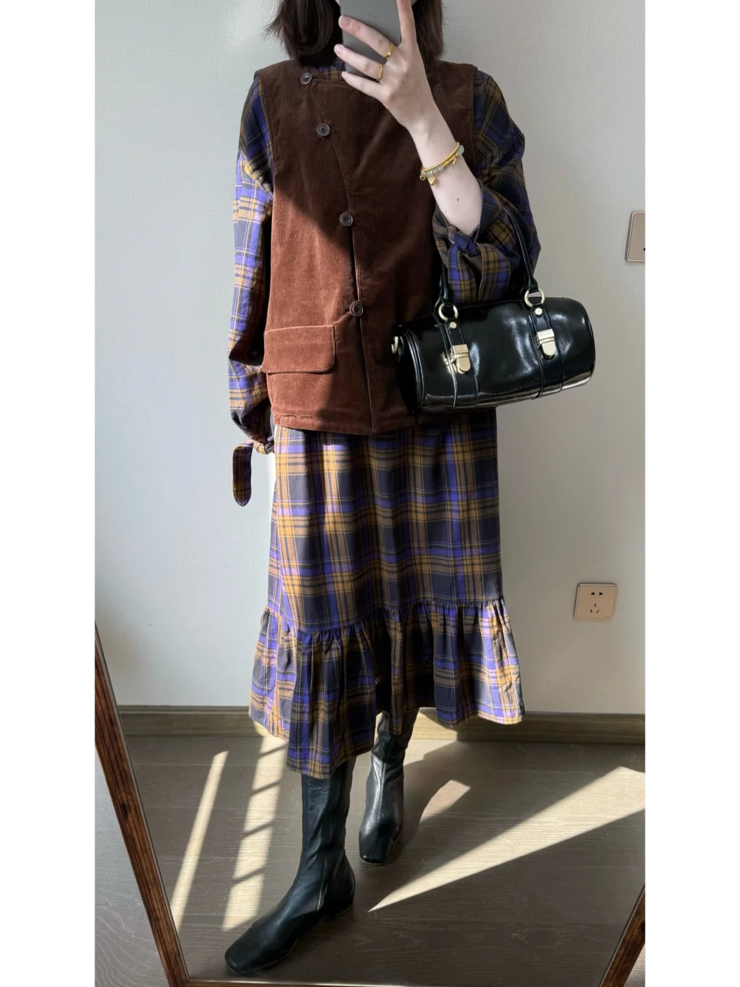 cleanfit简单出门 极简穿搭 通勤穿搭 格纹裙 秋冬也要穿裙子 格子控 秋冬连衣裙 复古连衣裙