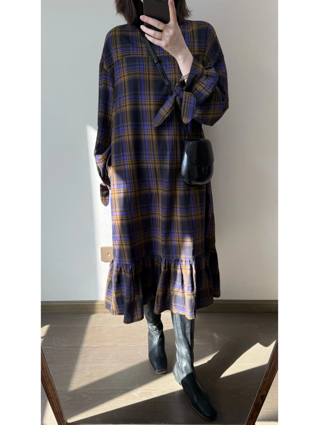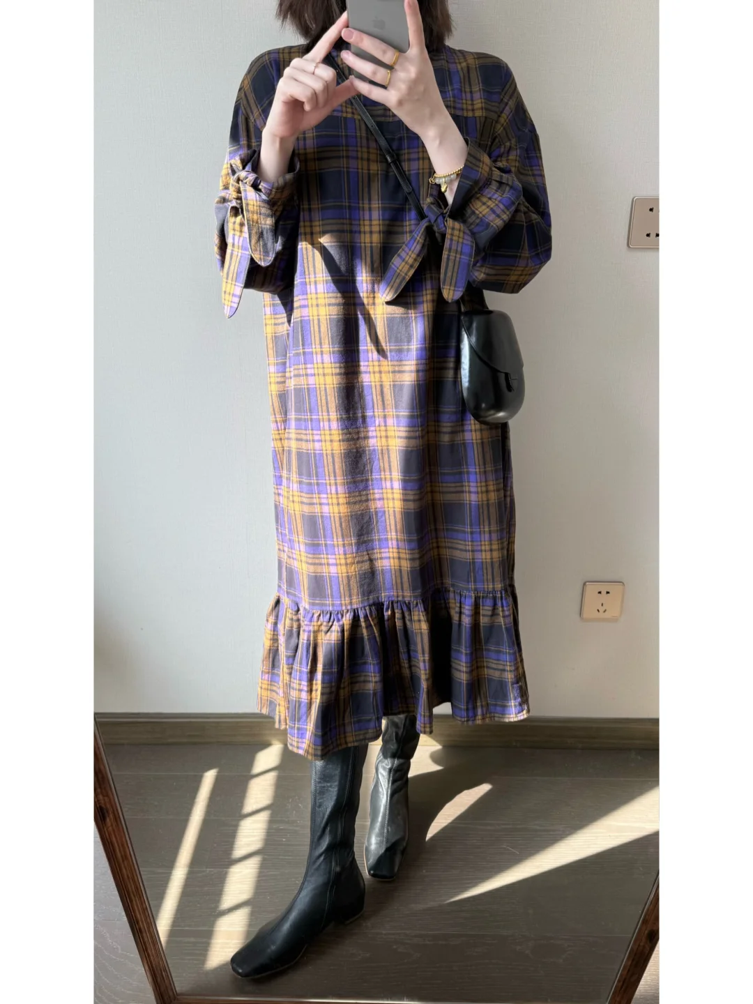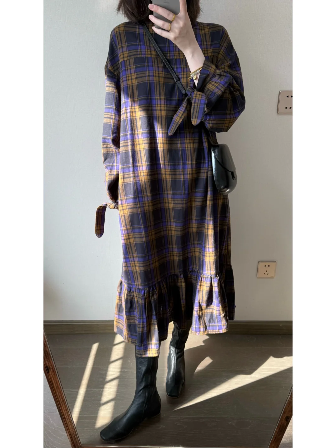 cleanfit简单出门 极简穿搭 通勤穿搭 格纹裙 秋冬也要穿裙子 格子控 秋冬连衣裙 复古连衣裙