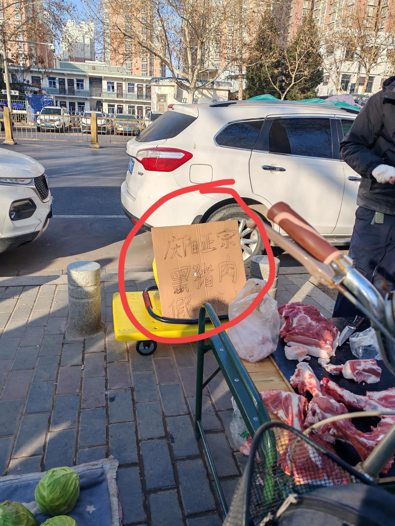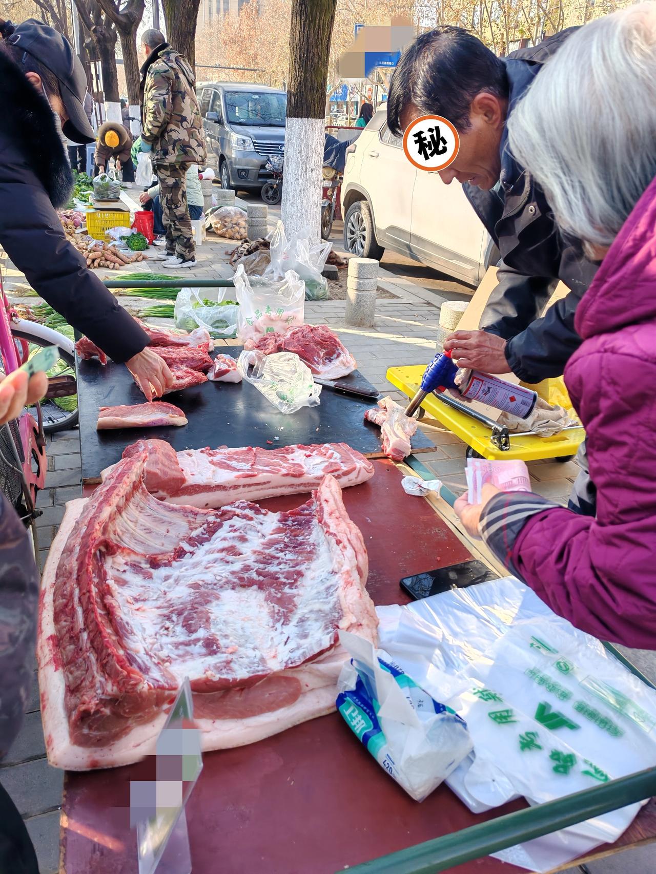 这个摊贩实诚人 1月13日,坐标西安。这是我昨天出差路上拍到的几张图片,发现有些小摊贩人品不错。 我在长庆生活区的街上,看到一个卖猪肉的小摊,摊上摆着半扇猪肉,已经分割成一块一块,看着颜色红润,肉质新鲜紧实,从肉皮上可以看出是黑毛猪。 摊贩哥竖了个牌子,见图三,牌子上写着“庆阳黑猪肉,假一赔十”。 很好,我第一次见到终于有商贩没写土猪肉了,只写的黑猪肉。以前见到的黑猪肉,卖肉人基本都自称土猪肉。 我询问了一下,这肉每斤16元,排骨20元,摊贩哥说他是庆阳人,每天下午宰猪,第二天过来卖,仔细看他卖的猪肉确实新鲜,不同于商场里的冷鲜肉。 他给顾客把猪毛处理干净,甚至还帮一个阿姨把买的肉切成了小块,不厌其烦,服务还是蛮贴心的。 感觉这个摊贩挺实诚,做生意,大家应该都喜欢这种实诚人吧,明明白白消费,不夸张,不自吹,反倒让人安心。