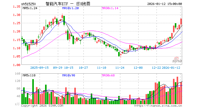 1月12日,智能汽车ETF(515250)涨3.07%,成交额1.42亿元。当日份额增加1700.00万份,最新份额为7.49亿份,近20个交易日份额增加2.77亿份。最新资产净值计算值为9.53亿元。
