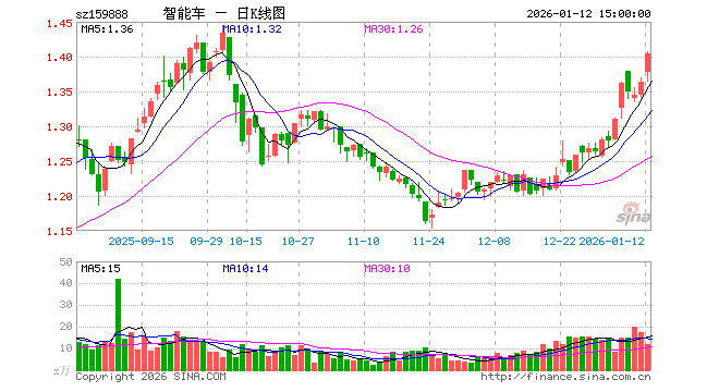 1月12日,智能汽车ETF华夏(159888)涨2.93%,成交额1661.75万元。当日份额增加100.00万份,最新份额为7344.61万份,近20个交易日份额增加1500.00万份。最新资产净值计算值为1.03亿元。