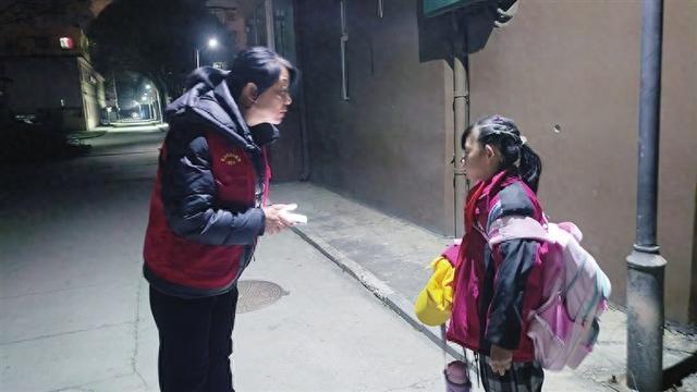 本报讯(记者韩睿文/摄)1月11日晚,一名9岁女童在兴趣班放学后尝试独自回家,不承想迷了路,急得大哭,幸被巡查中的网格员及时发现。网格员通过网格微信群,终于联系上焦急寻找孩子的母亲,随后助力孩子平安归家。