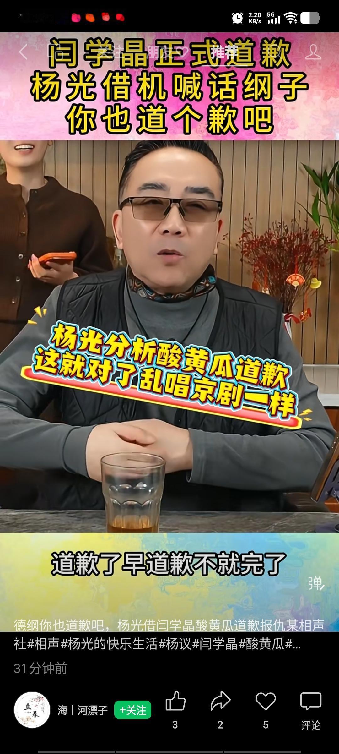 杨老五带货酸黄瓜,销量还不错,这波流量蹭得恰到好处。昨天针对酸黄瓜事件,杨老五道出了自己的看法,他说酸黄瓜都道歉了,早点道歉不就没这么多事儿了嘛,您说是不?人都有失手的时候,就像马也有失前蹄的时候。既然说错话了,大大方方出来道个歉,大家也能原谅。毕竟你是艺人,知错能改,善莫大焉,别出来还耍横,那就不合适了。 说完闫学晶,他又不忘调侃几句班主。杨老五俨然一副高高在上的评论家模样,说得头头是道。既卖了货,又找了乐,这钱赚得可太轻松了。他这是看热闹不嫌事大,却忘了自己也曾在七月风波中被推到风口浪尖,那种滋味他最清楚。这时候别幸灾乐祸,更别贬低他人,安安心心带你的货,这种事儿少掺和,免得把自己卷进去。