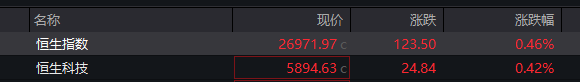 恒生指数高开0.46% 恒生科技指数涨0.42%