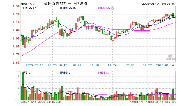 1月14日,战略新兴ETF(512770)开盘涨0.00%,报2.153元。战略新兴ETF(512770)重仓股方面,新易盛开盘涨1.25%,中际旭创涨1.64%,东方财富跌0.53%,比亚迪跌0.39%,恒瑞医药涨0.05%,立讯精密跌0.70%,阳光电源跌0.40%,海光信息涨1.80%,胜宏科技涨1.22%,药明康德跌0.05%。