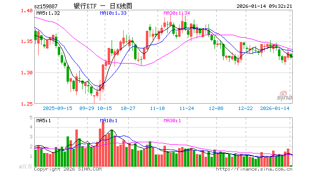 1月14日,银行ETF(159887)开盘跌0.23%,报1.329元。银行ETF(159887)重仓股方面,招商银行开盘涨0.00%,兴业银行跌0.19%,工商银行跌0.26%,农业银行跌0.39%,交通银行跌0.14%,江苏银行涨0.58%,浦发银行涨0.35%,平安银行涨0.00%,民生银行跌0.26%,上海银行跌0.30%。