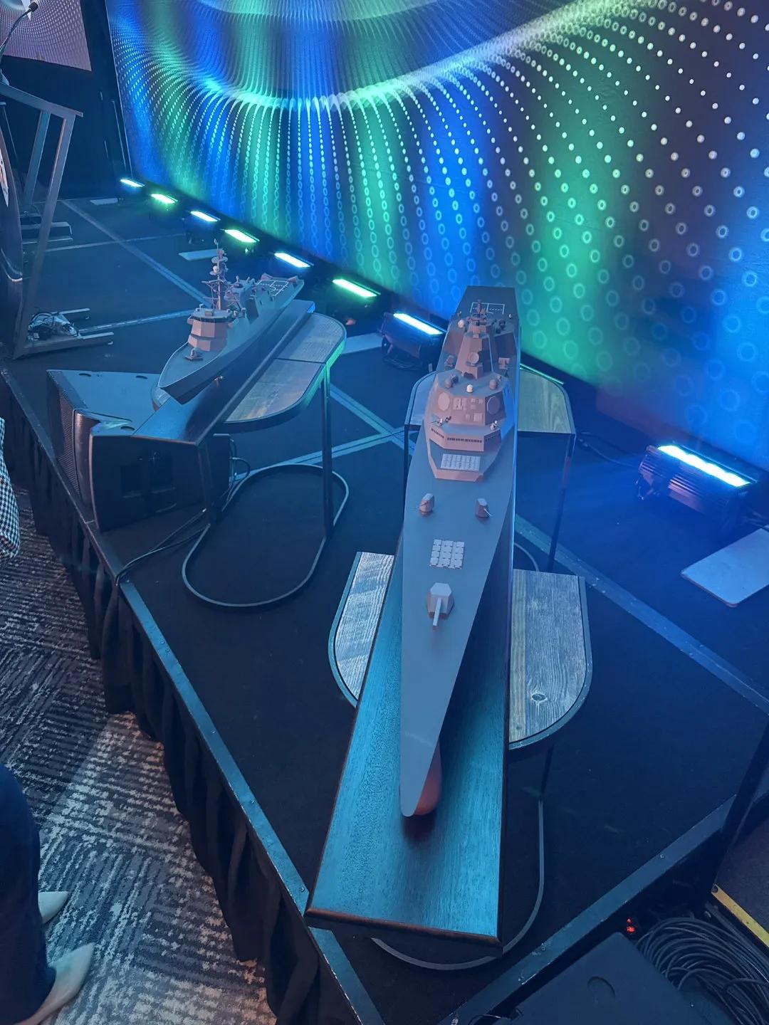 特朗普级导弹战列舰BBG(X)和新型护卫舰FFG(X)的模型公开展示。亨廷顿·英