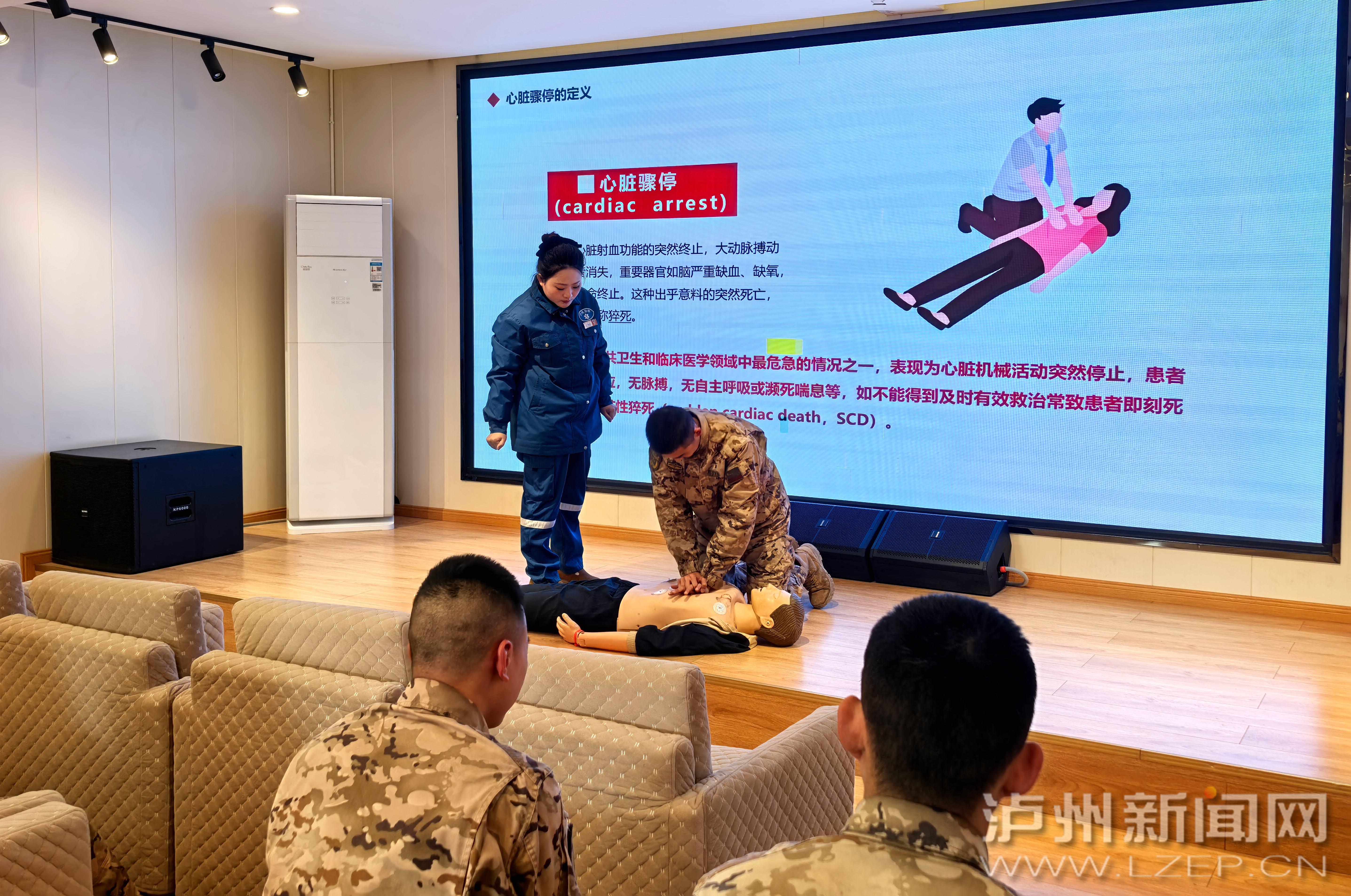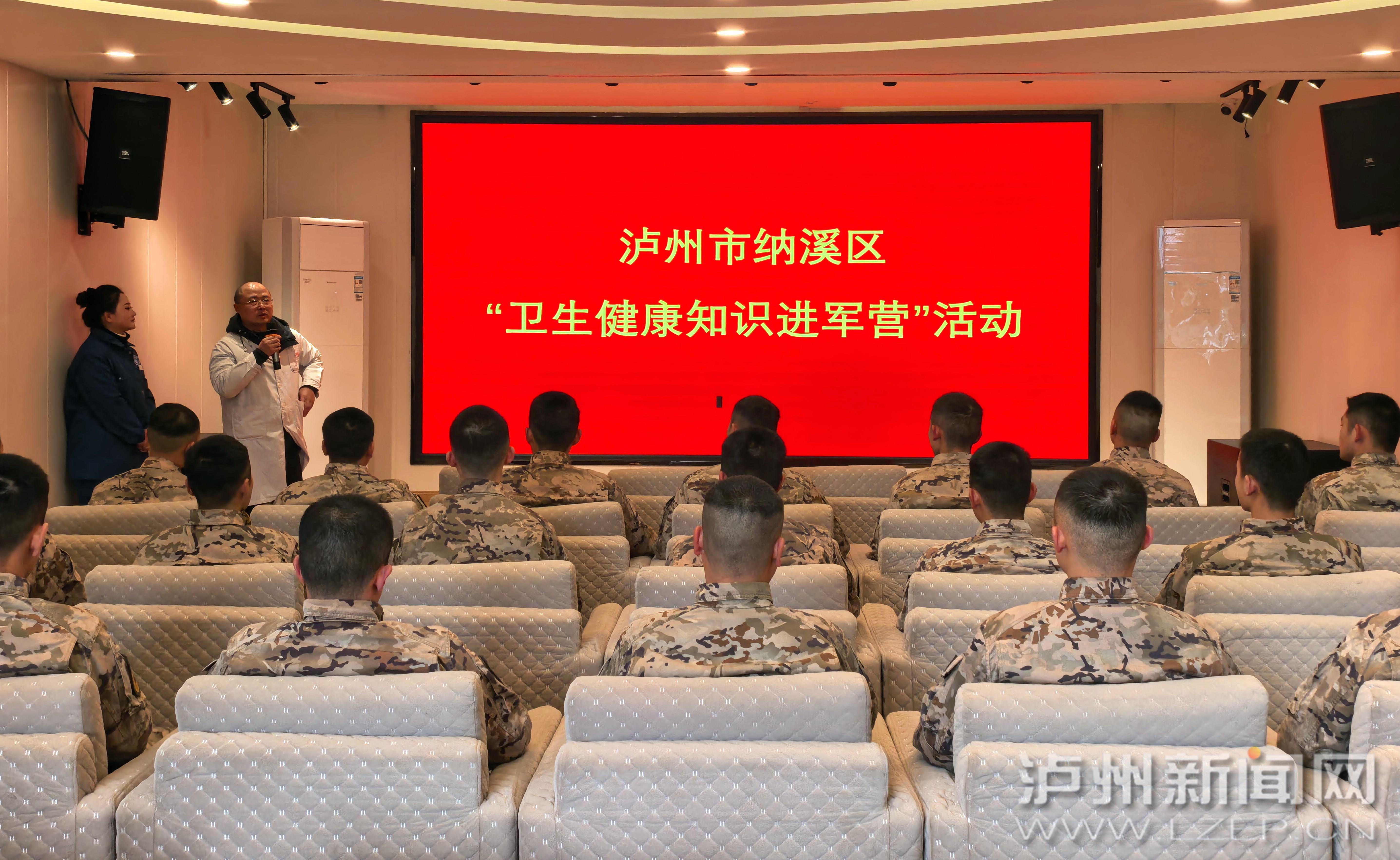 1月12日,纳溪区退役军人事务局和纳溪区人民医院到武警泸州中队开展“卫生健康知识进军营”活动。