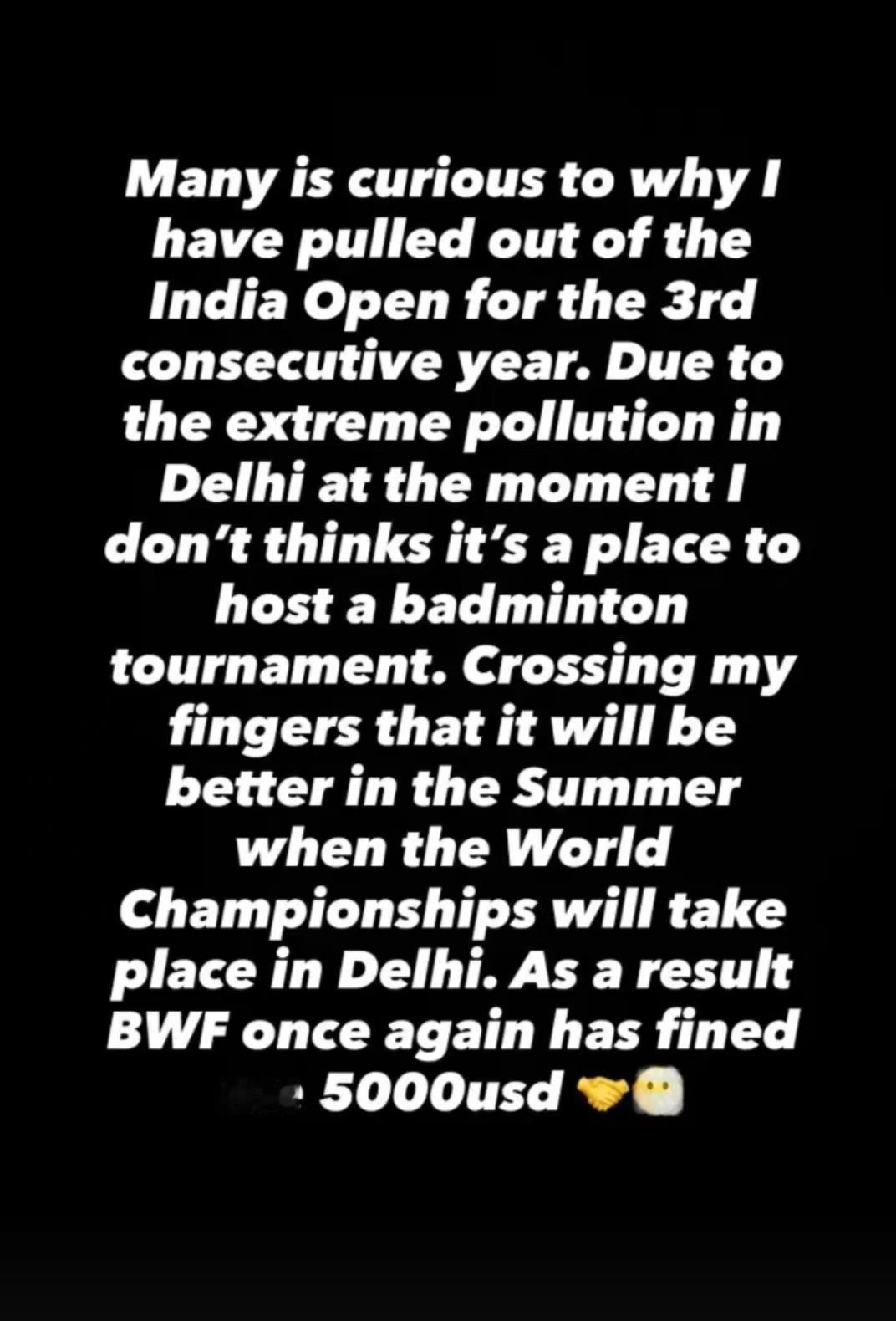空气污染严重逼退运动员,宁愿被罚篮5000美元也要保证自己的健康! 丹麦羽球名将安东森在社媒发文,回应为何选择退出印度羽毛球公开赛,并晒图吐槽了印度的空气质量,这已是他第三次选择退赛! 现在德里的空气污染实在严重,安东森认为现在的印度并不适合举办任何羽毛球赛事,他真心期盼今年夏天情况能有所好转,毕竟世锦赛届时也将在德里举行。 画面中可以看到,即便比赛现场是在室内,不过灯光下显示的空气明显能够看出污染有多严重,运动员在大幅度运动后所吸入的空气要比常人多,更别提还有其中的味道。 安东森:印度空气污染太严重,我认为不适合办比赛!