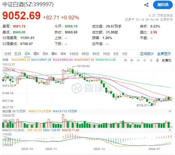 中证白酒自去年11月达到10000点的高位后,连续1月下挫至8700点。即使在最近这一波“A股17连阳”的上涨潮中,也仅有3%的涨幅。