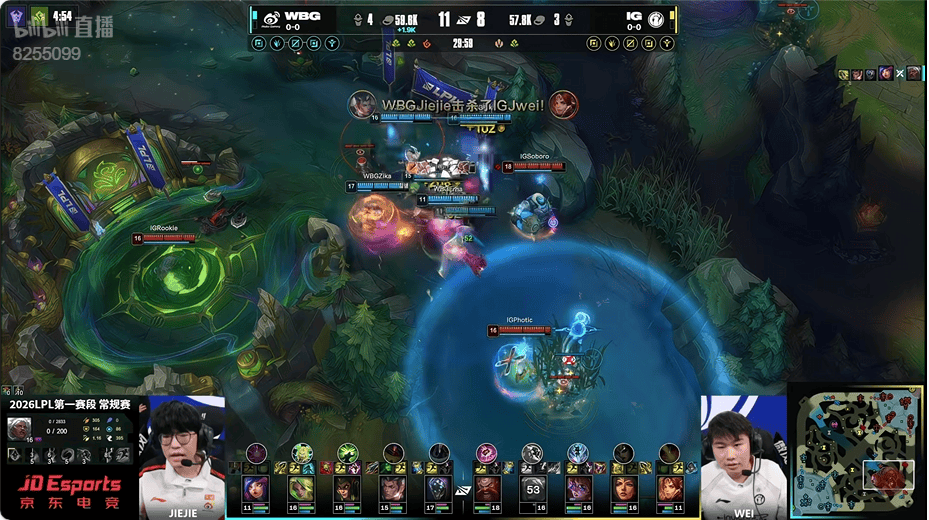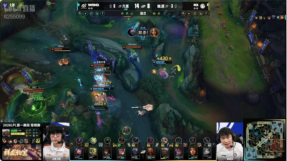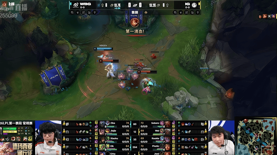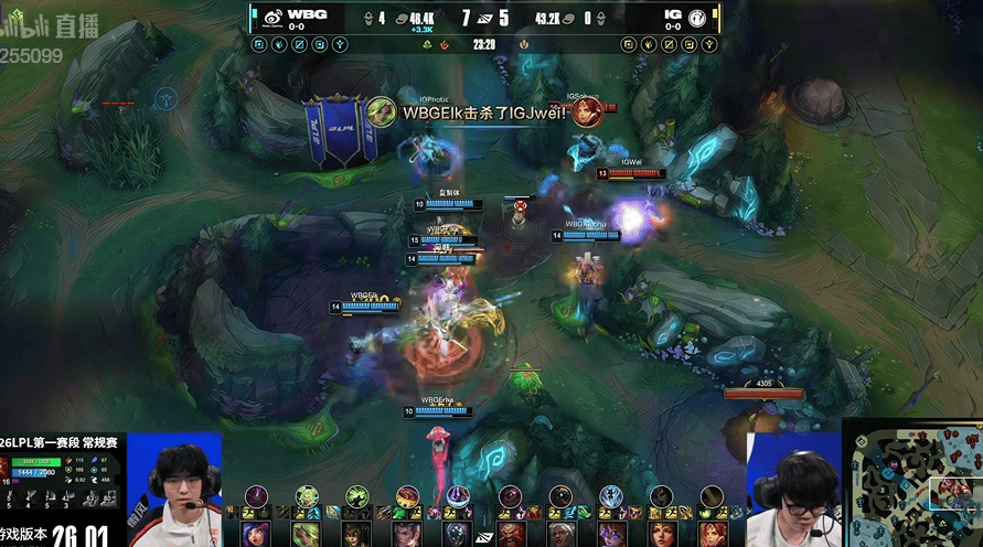 虎扑01月14日讯IG红色方,WBG蓝色方