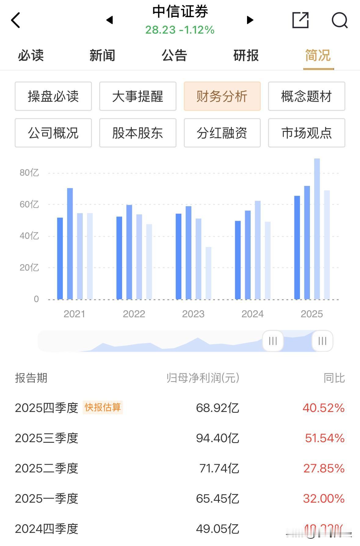 中信证券无疑是近年来最被低估的券商龙头,当然这也是资金故意为之的。 中信证券发布业绩快报,2025年实现净利超300亿元,为300.51亿元,创下了历史首次300亿元的突破,同比增长38.46%。 中信证券四季度净利润68.92亿元,同比增长40.52%。 中信证券的25年的静态市盈将降至14.0倍以下。 估值依然处于其历史低点水平。 乐呀财经