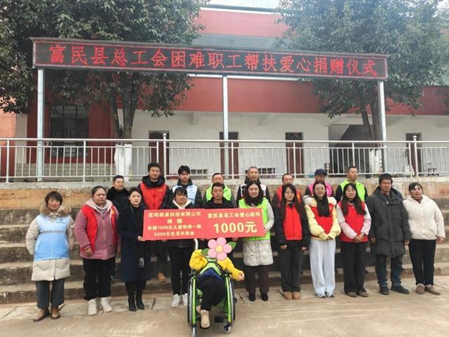 1月9日上午,富民县一所学校的操场上暖意融融。一场温暖的捐赠仪式在此举行,云南弘源纸业职工梁顺富从富民县总工会及爱心企业代表手中接过生活补助金时,眼眶微红、几度哽咽:“感谢工会和爱心企业,寒冬里送来轮椅和补助金,我心里暖暖的,相信日子会越来越好。”此次捐赠由富民县总工会联合县群团联盟牵头,县残联、妇联、红十字会等多部门共同见证。