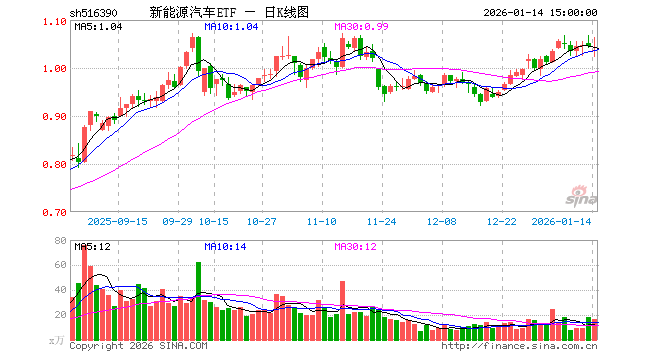 1月14日,新能源汽车ETF(516390)跌0.77%,成交额1696.91万元。当日份额增加150.00万份,最新份额为2.44亿份,近20个交易日份额减少5250.00万份。最新资产净值计算值为2.53亿元。