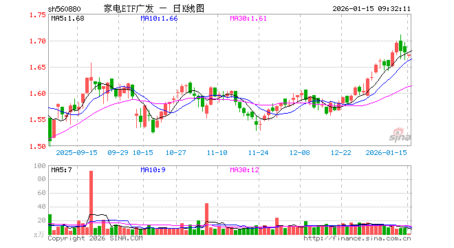 家电ETF广发(560880)业绩比较基准为中证全指家用电器指数收益率,管理人为广发基金管理有限公司,基金经理为陆志明,成立(2022-03-30)以来回报为68.08%,近一个月回报为6.29%。