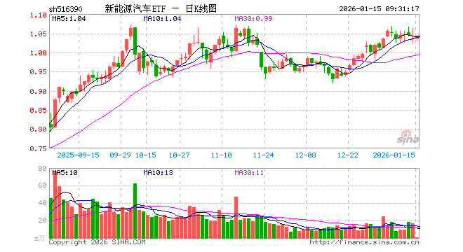 1月15日,新能源汽车ETF(516390)开盘跌0.19%,报1.035元。新能源汽车ETF(516390)重仓股方面,宁德时代开盘跌0.35%,汇川技术跌0.08%,比亚迪跌0.02%,亿纬锂能跌0.39%,三花智控跌0.49%,华友钴业涨2.50%,赣锋锂业跌0.38%,先导智能涨1.95%,长安汽车涨0.00%,天赐材料跌0.86%。