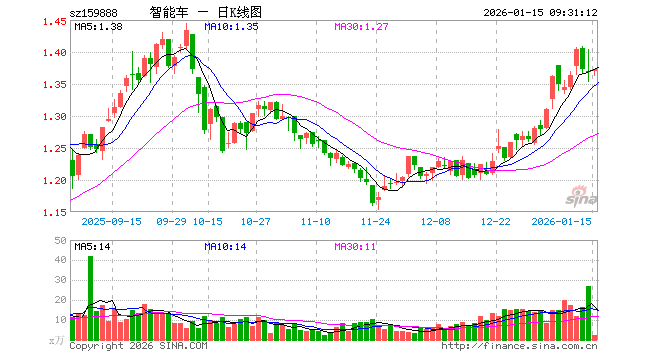 1月15日,智能汽车ETF华夏(159888)开盘涨0.00%,报1.369元。智能汽车ETF华夏(159888)重仓股方面,立讯精密开盘跌0.45%,芯原股份涨0.85%,拓普集团跌0.54%,豪威集团跌0.07%,科大讯飞跌1.56%,德赛西威涨1.38%,闻泰科技跌0.77%,欧菲光涨0.54%,均胜电子涨0.00%,思特威跌0.67%。