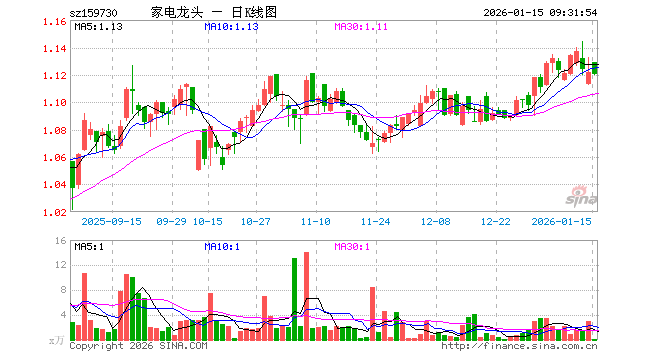 1月15日,龙头家电ETF(159730)开盘涨0.62%,报1.129元。龙头家电ETF(159730)重仓股方面,三花智控开盘跌0.49%,海尔智家跌0.42%,美的集团涨0.40%,格力电器涨0.00%,石头科技跌0.72%,德业股份跌0.84%,科沃斯跌0.55%,公牛集团涨0.53%,海信家电跌0.04%,老板电器跌0.36%。