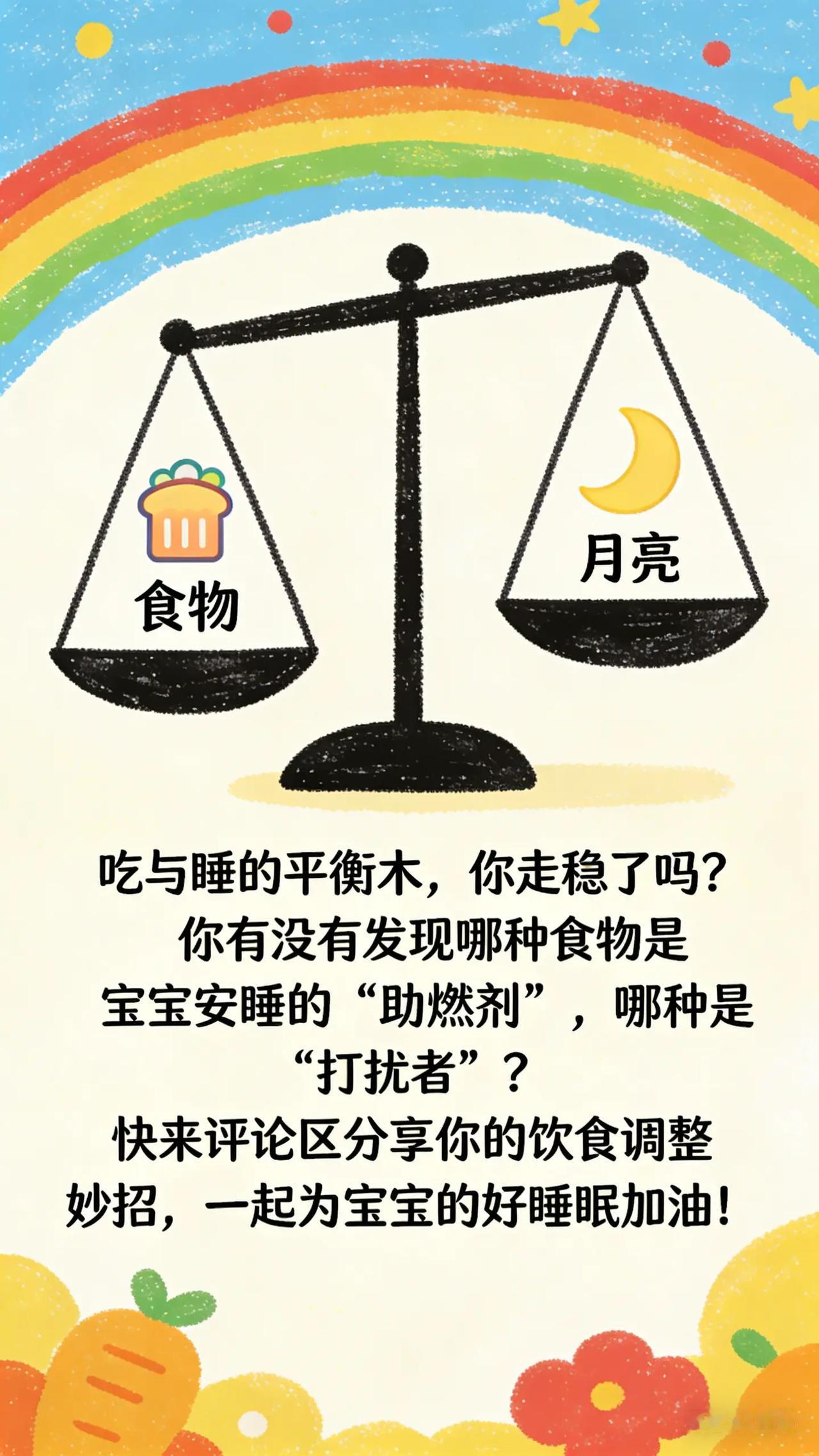 吃与睡的平衡木:如何为宝宝安睡加油。爸爸妈妈们,有没有发现宝宝的饮食似乎会影响睡眠?有时候宝宝吃多了,肚子胀胀的,晚上翻来覆去睡不好;吃少了,半夜又饿得哭闹。还有,给宝宝喝了有刺激性的饮品,宝宝晚上就兴奋得难以入睡。你们想知道如何通过合理饮食,让宝宝睡得更安稳,却不知道该怎么把握饮食的量和种类。科学原理宝宝的消化系统在 0 - 3 岁还在发育中,饮食的质和量都会影响睡眠。吃得过饱,胃肠道负担加重,可能引起消化不良、腹胀等不适,影响睡眠质量。吃得过少,宝宝夜间可能因饥饿醒来。此外,含有咖啡因等刺激性成分的饮品,会刺激宝宝神经系统,使其兴奋,难以入睡。了解饮食与睡眠的关系,有助于调整宝宝的饮食安排。具体方法控制饮食量:根据宝宝年龄和体重,合理安排每餐的食量。晚餐不要让宝宝吃得过饱,可以比午餐稍微少一些。比如,1 - 2 岁宝宝晚餐可以吃小半碗粥、一些蔬菜和少量肉类。睡前 1 - 2 小时避免进食过多固体食物,以免加重肠胃负担选择合适食物:避免给宝宝喝含有咖啡因的饮料,如可乐、茶等。睡前可以给宝宝喝一杯温热的牛奶,牛奶中的色氨酸有助于促进睡眠。对于已经添加辅食的宝宝,多吃富含维生素 B6 的食物,如香蕉、土豆等,也有助于改善睡眠。常见误区误区一:睡前给宝宝吃太多零食。很多家长觉得宝宝睡前吃点零食没关系,但零食往往不易消化,还可能导致宝宝龋齿,影响睡眠和口腔健康。睡前应避免给宝宝吃零食。误区二:不考虑食物特性。有些食物可能会引起宝宝肠胃不适或过敏,影响睡眠。比如,有些宝宝吃了海鲜后可能会出现皮肤瘙痒、肠胃绞痛等症状,从而影响睡眠。要了解宝宝的食物过敏史,选择合适的食物。你家宝宝因为饮食问题影响睡眠时,你是怎么调整的呢?在评论区分享你的经验,帮助其他家长。 宝宝饮食 睡眠质量 科学喂养 育儿经验
