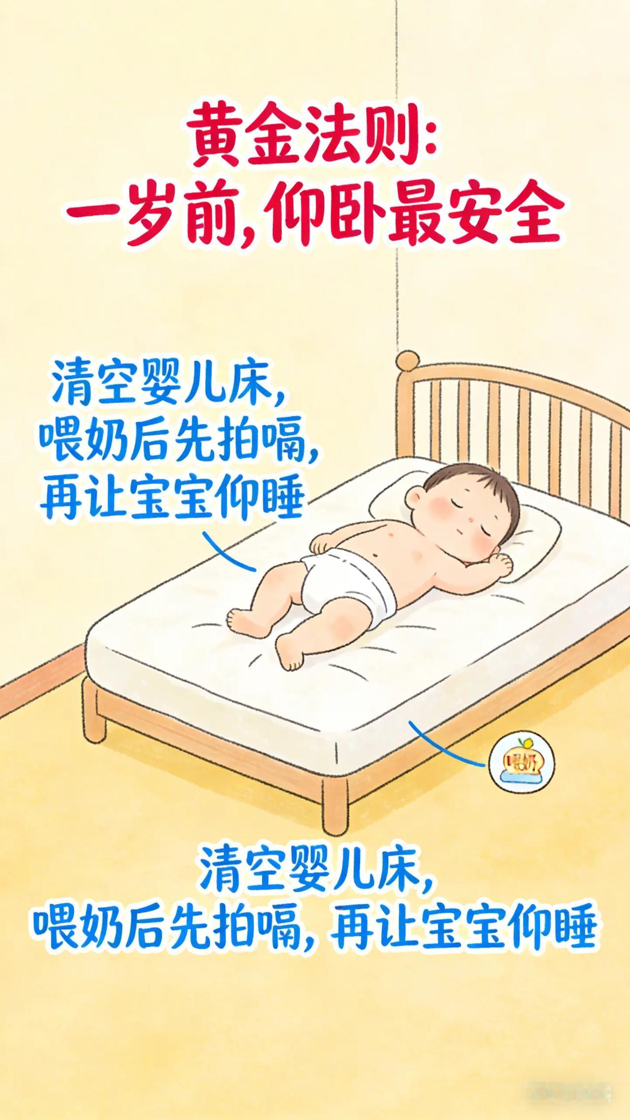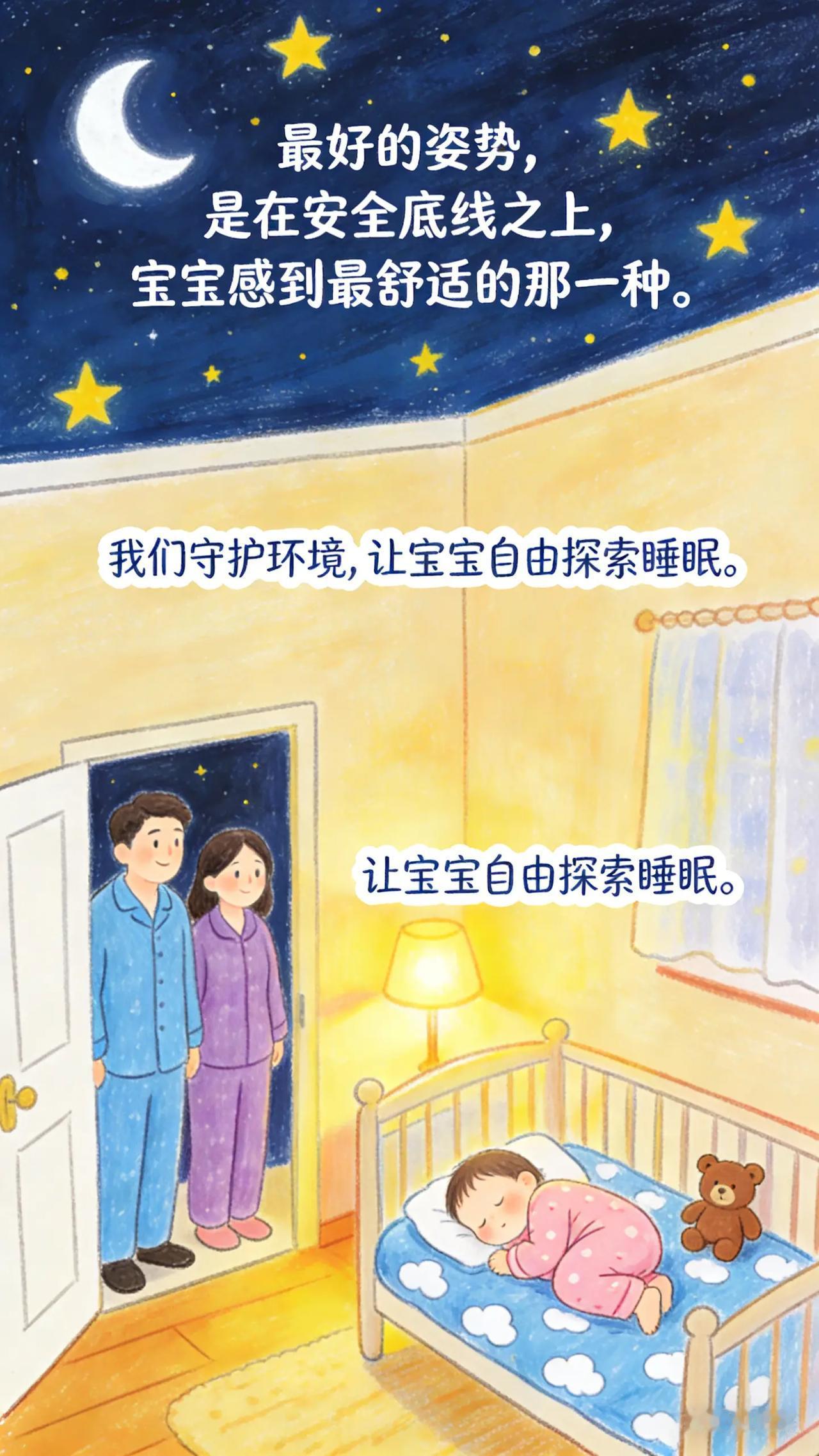 睡姿大作战:找到宝宝的安全岛。新手爸妈们,是不是在宝宝睡觉姿势的选择上很纠结?担心宝宝趴着睡会堵住口鼻,影响呼吸;仰着睡又怕宝宝吐奶时呛到;侧着睡又不知道怎么固定姿势,生怕宝宝翻来翻去。你们希望给宝宝选择一个最安全、舒适的睡眠姿势,却又充满担忧和困惑。科学原理AAP 建议,对于 0 - 1 岁的宝宝,仰卧是最安全的睡眠姿势,可以显著降低婴儿猝死综合征(SIDS)的风险。1 岁以后,宝宝的翻身能力增强,睡眠姿势可以相对多样化,但仍要注意避免一些可能影响呼吸或造成窒息的危险姿势。不同的睡眠姿势对宝宝的身体发育也有一定影响,比如趴着睡可能有助于锻炼宝宝的颈部和上肢肌肉,但需在家长密切监护下进行。具体方法0 - 1 岁仰卧为主:将宝宝平放在床上,头部稍微垫高,避免吐奶时呛到。如果宝宝容易吐奶,可以在喂奶后适当竖抱一会儿,拍出嗝后再让宝宝仰卧睡觉1 - 3 岁多样化姿势:当宝宝 1 岁后,可以根据宝宝的喜好选择睡眠姿势。如果宝宝喜欢趴着睡,要确保床上没有柔软的物品,如枕头、毛绒玩具等,避免堵住宝宝口鼻。侧睡时,可以在宝宝背后放一个小枕头,帮助固定姿势,但不要让枕头过高或过软常见误区误区一:认为趴着睡对宝宝好就一直让宝宝趴着睡。虽然趴着睡有一定好处,但对于小月龄宝宝,趴着睡存在窒息风险,不能在无人监护的情况下让宝宝长时间趴着睡。误区二:不注意纠正宝宝不良睡眠姿势。如果发现宝宝睡眠姿势可能影响呼吸或身体发育,如蜷缩成一团、头部过度扭曲等,要及时轻轻纠正,帮助宝宝养成良好的睡眠姿势习惯。你家宝宝最喜欢哪种睡眠姿势呢?你是如何确保宝宝睡眠姿势安全的?快来评论区分享。宝宝睡姿 睡眠安全 仰卧睡眠 育儿安全
