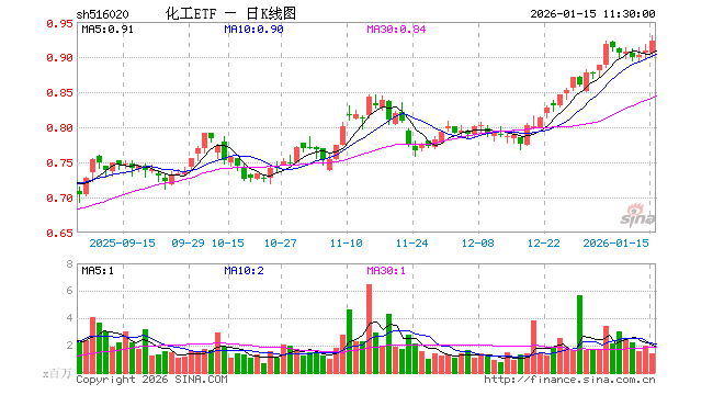 1月15日,截止午间收盘,化工ETF(516020)涨1.54%,报0.922元,成交额1.28亿元。化工ETF(516020)重仓股方面,万华化学截止午盘涨2.72%,盐湖股份涨1.99%,巨化股份涨2.05%,天赐材料涨2.62%,藏格矿业涨2.10%,金发科技跌1.26%,华鲁恒升涨3.88%,宝丰能源涨2.17%,恒力石化涨0.42%,云天化涨3.41%。