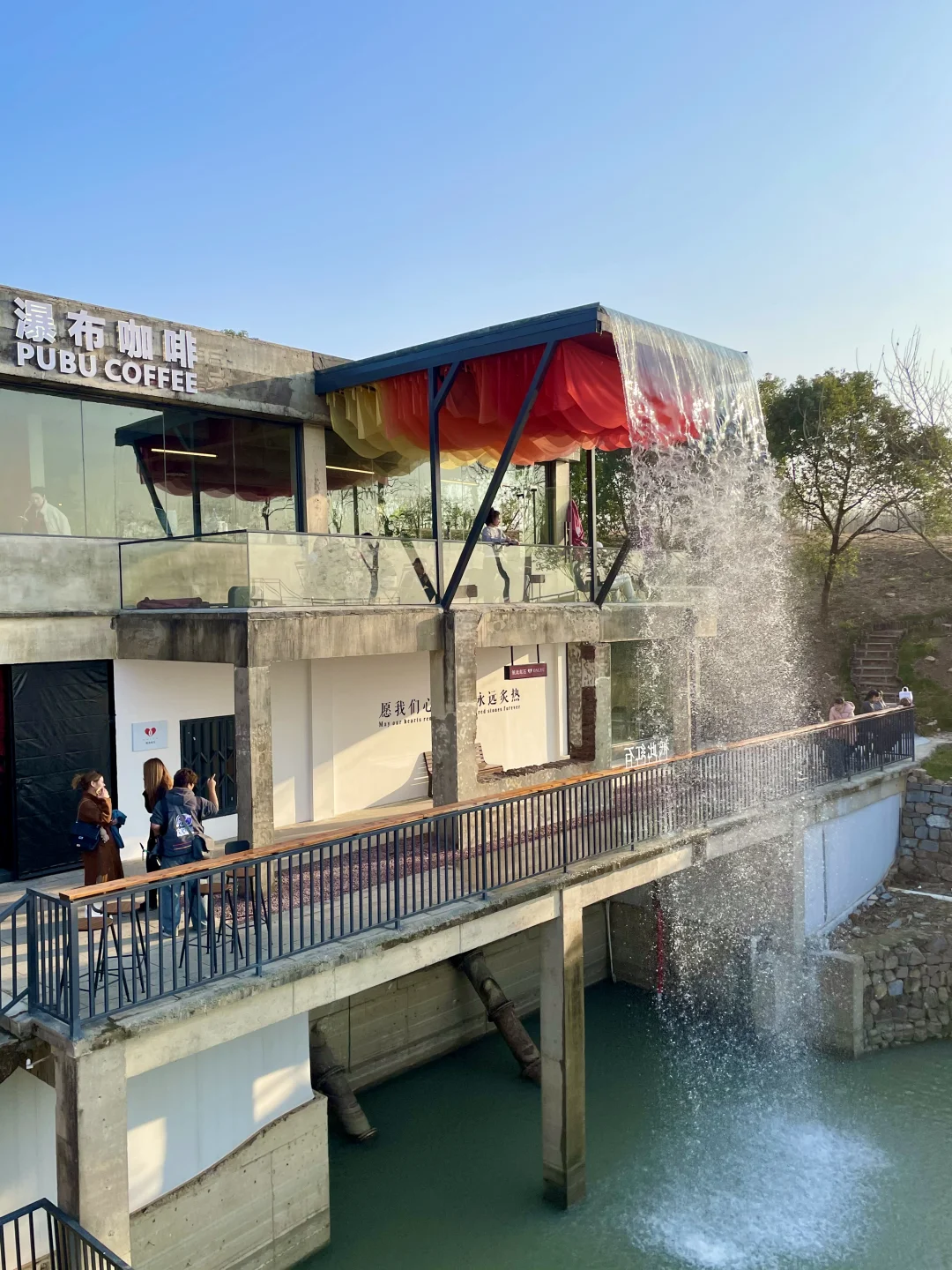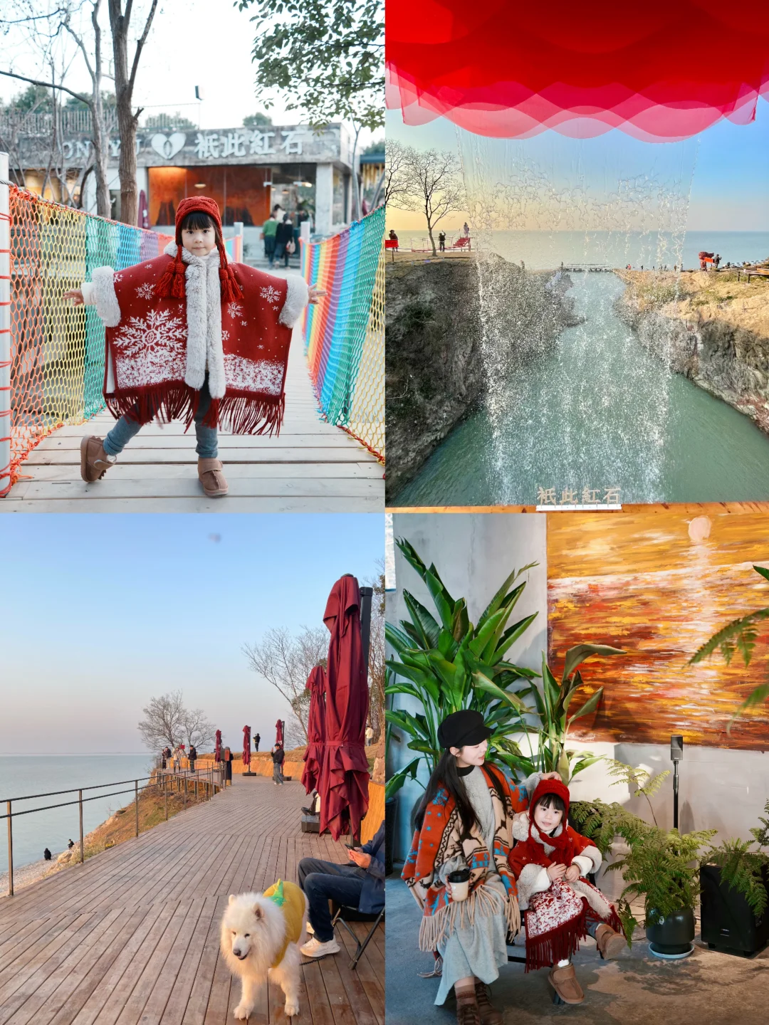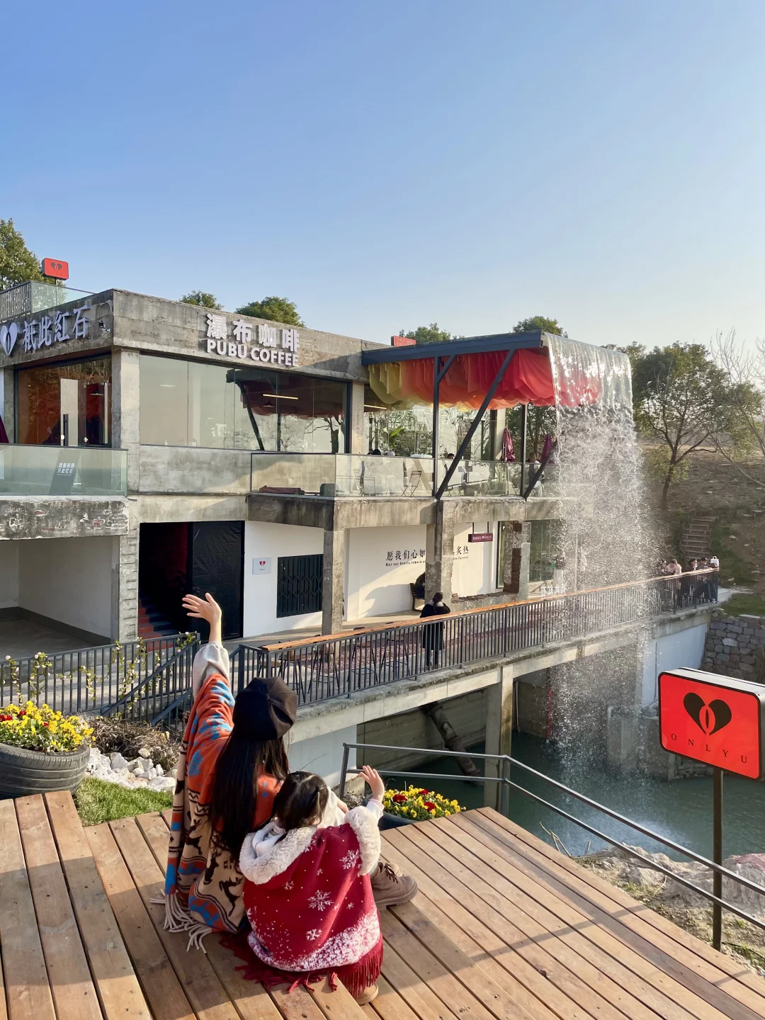 推门就是飞流瀑布,水雾氤氲着咖啡香☕娃挖沙玩水,我等巢湖夕阳 ✨