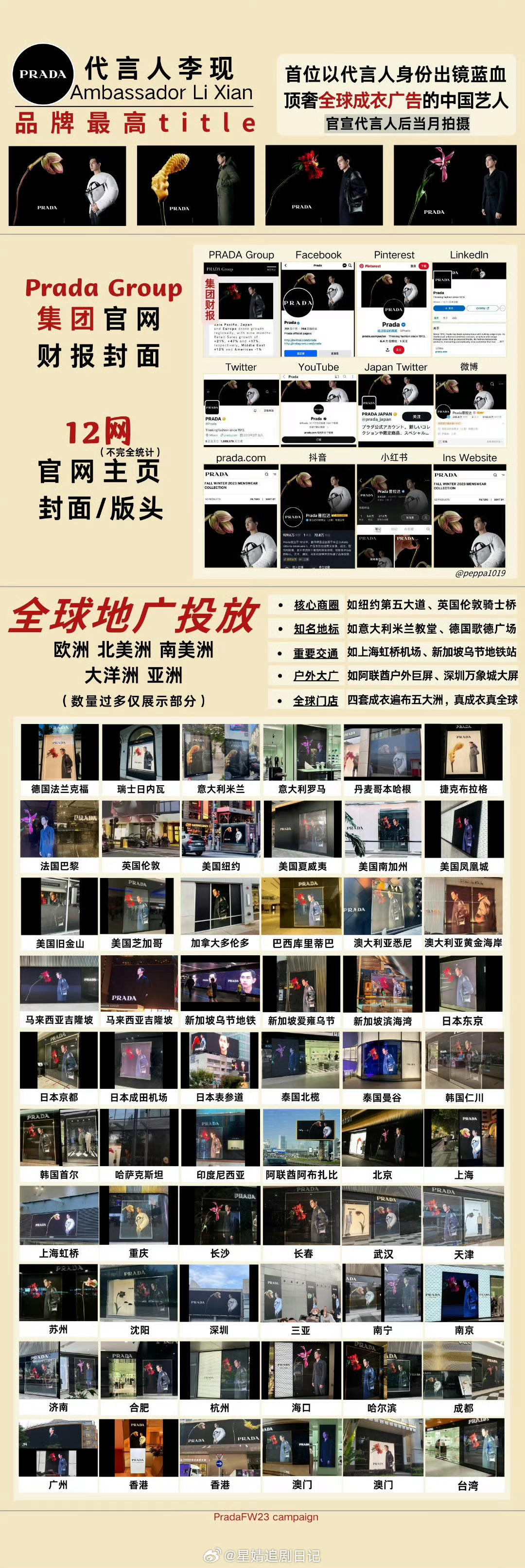 李现最新商务汇总🈶 这才是真正的全球地广,Prada全球代言人李现的含金量就是