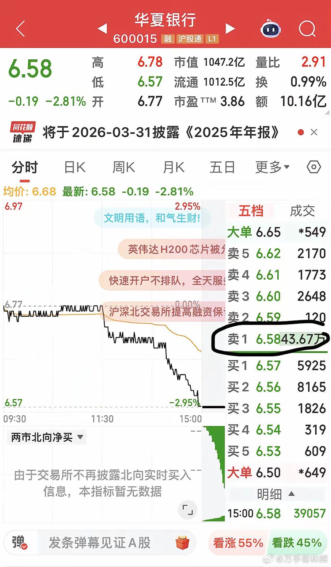 多家银行尾盘出现超级大单压盘!招商银行尾盘出现164万手压单!兴业银行尾盘出现51万手压单!北京银行尾盘出现48万手压单!浦发银行尾盘出现44万手压单!华夏银行尾盘出现43万手压单!朋友们,猜猜是谁在压盘?备注:压盘只是恐吓,并非真心想卖出!