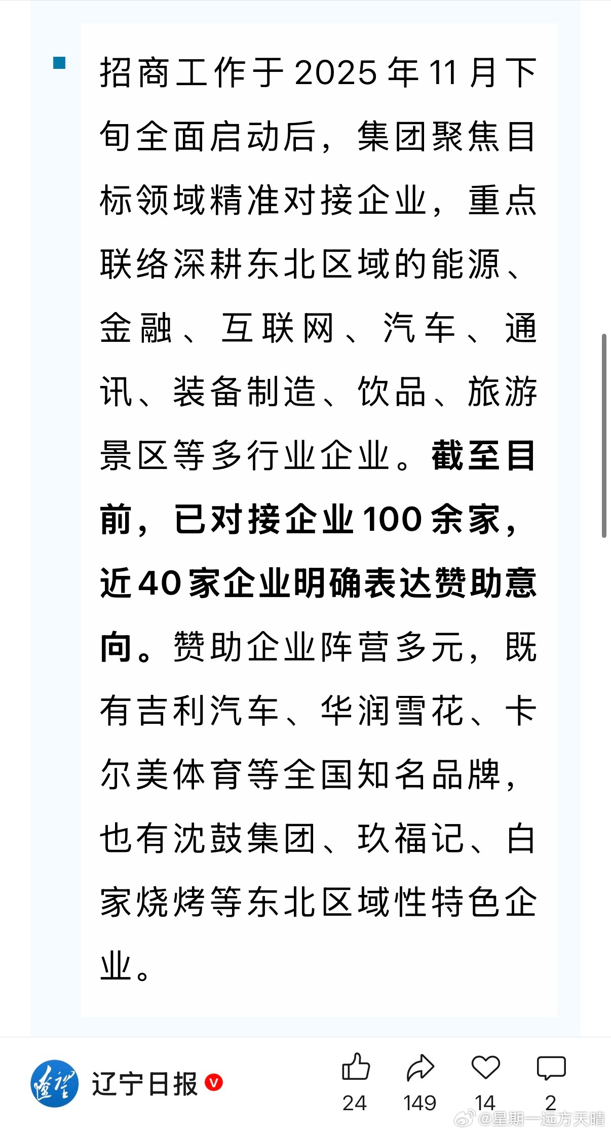 东北超辽宁足球 辽宁日报:目前已获得赞助超过5000万元。我看了一下,基本是在沈