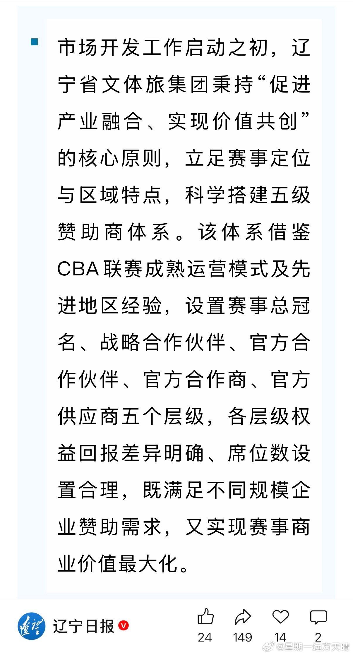 东北超辽宁足球 辽宁日报:目前已获得赞助超过5000万元。我看了一下,基本是在沈阳的企业。联赛会办得怎样,拭目以待吧~但成功经验确实是有,这个不得不承认。而且做事的思维也确实跟我们不一样。