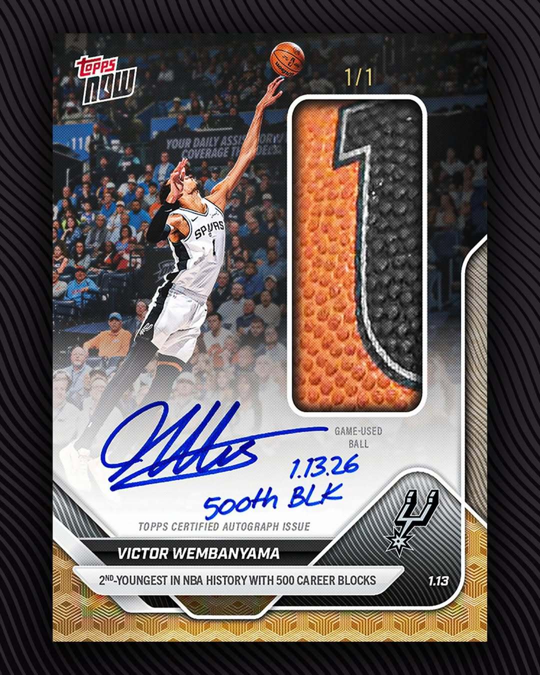 文班亚马生涯500盖帽的比赛用球,被封存进一张1/1亲签的球星卡中👽💵