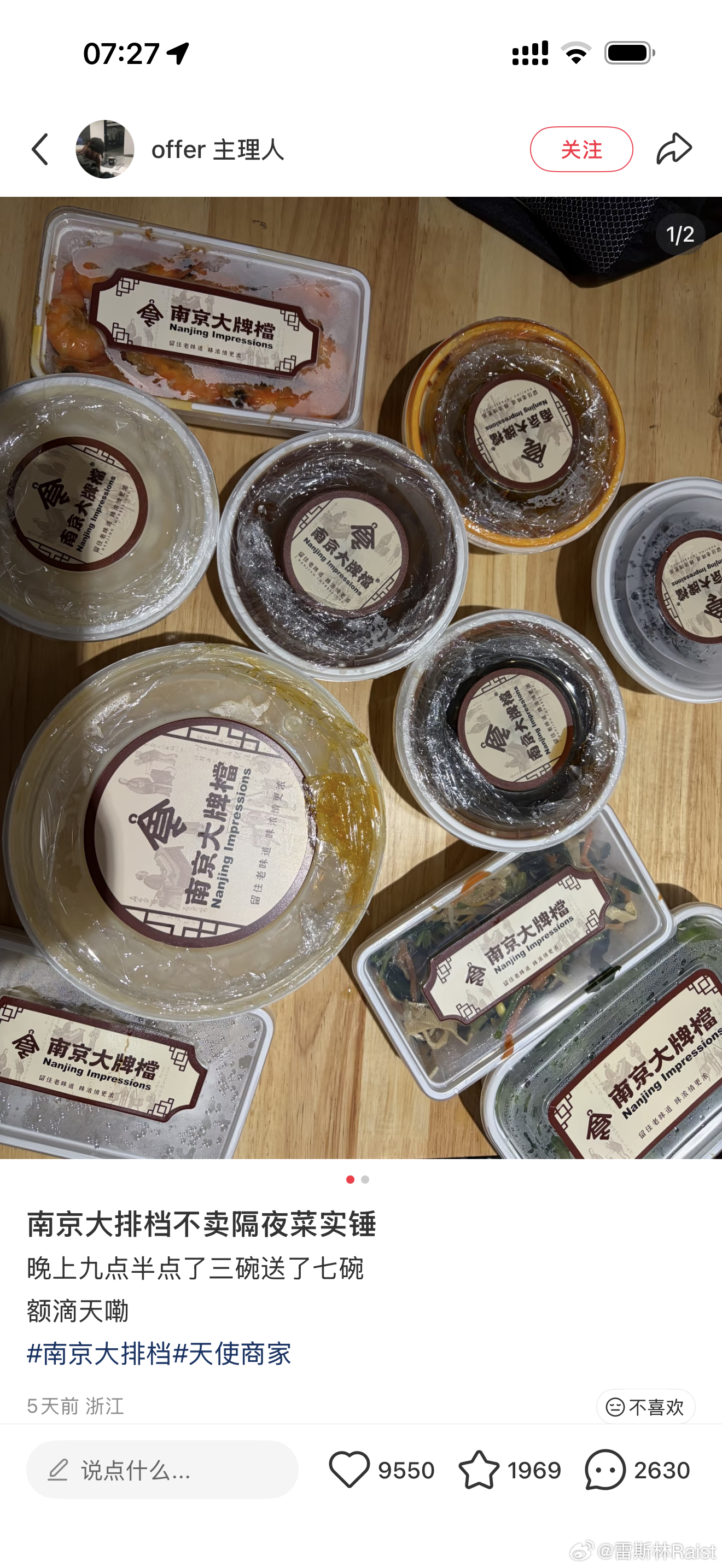 说到晚上过了9点半,点南京大牌档的外卖,他们会送你一大堆吃的。都是当天没卖完的吃