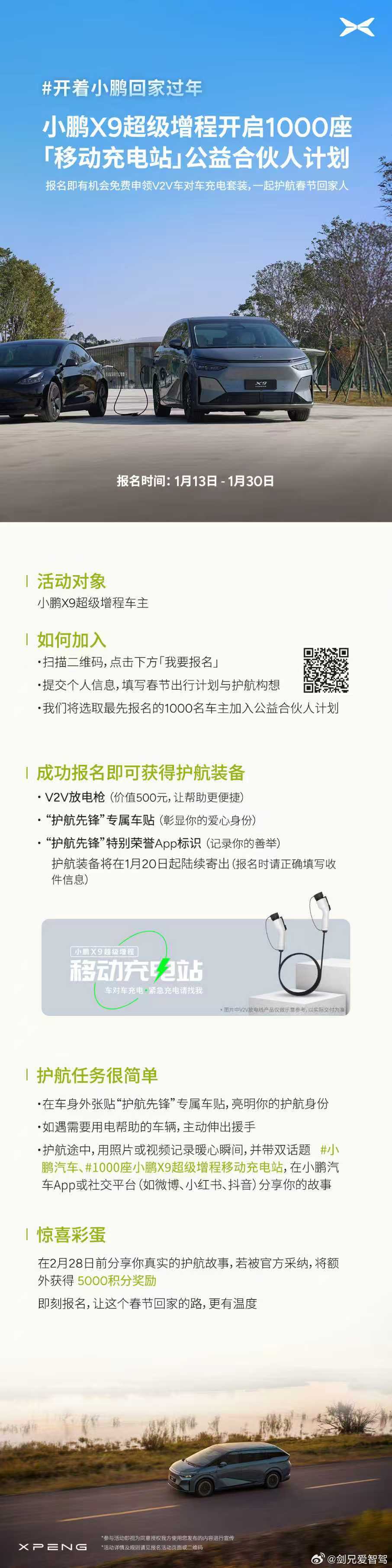 爱了爱了,小鹏新X9这个功能有点东西啊,可以随时随地给朋友分享电……这么说起来,莫非我真的应该搞一台?然后到处给人充电,会不会充着充着,做了好事,又不知不觉突然就发财了?期待ing… 请允许我再好好想想小鹏X9招募移动充电站公益合伙人开着小鹏回家过年小鹏汽车