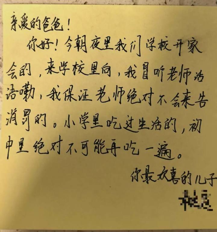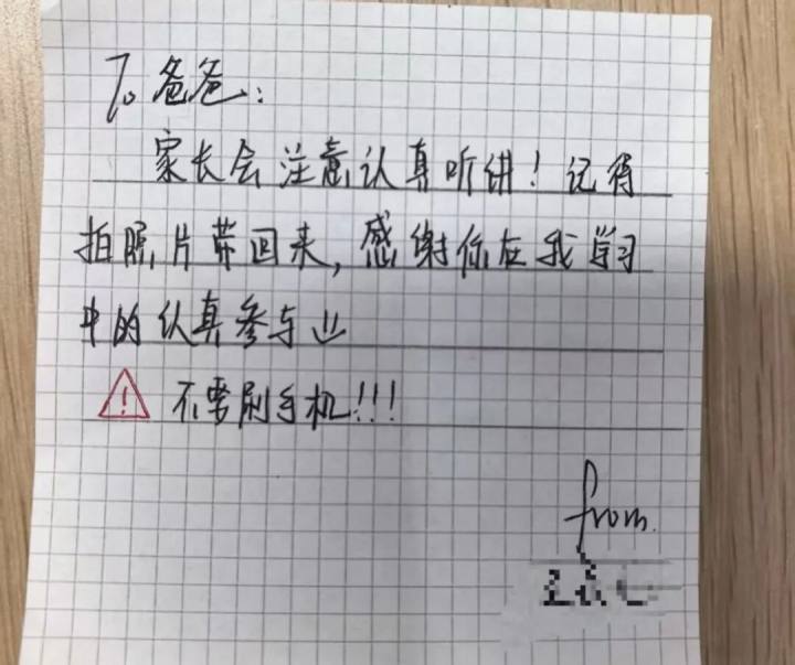 为了迎接这次家长会,不少同学都做了准备——给家长写了有意思的小纸条。有学生用杭州话说,自己在学校里很听话,老师不会来告状的。小学时候有过教训了,初中不会再不听话被惩罚了。感觉求生欲满满。