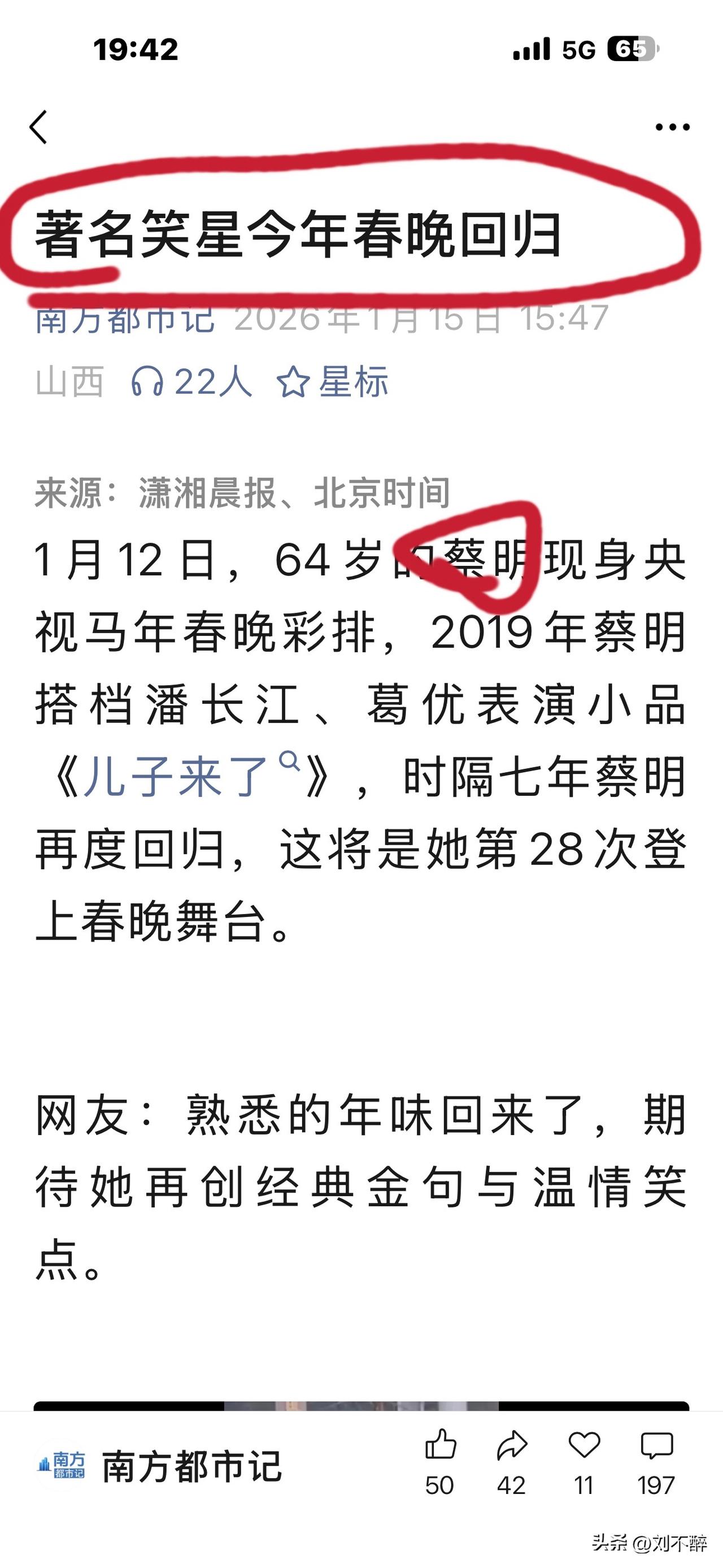 著名笑星蔡明今年春晚回归!网友:更期待本山大叔出来走两步!