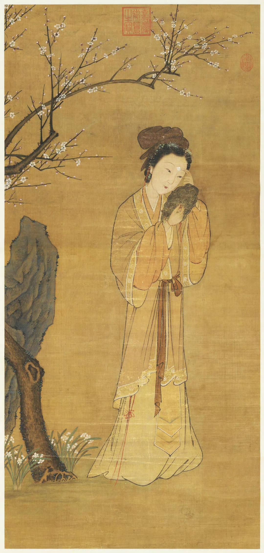 🌹诗词|“清晨帘幕卷轻霜,呵手试梅妆。‌”——宋·欧阳修《诉衷情》‌ 释义:女子清晨呵气融霜,轻点梅花妆,表现妆容的细致与情感的含蓄。‌ 传闻,梅花妆是南朝宋寿阳公主所创。往后数百年间,清丽的梅花妆,出现在了许多诗人笔下,或许这股仿妆潮流一直未曾止息。 🌹赏画| 元·佚名《梅花仕女图》 传统文化 绘画 古诗词