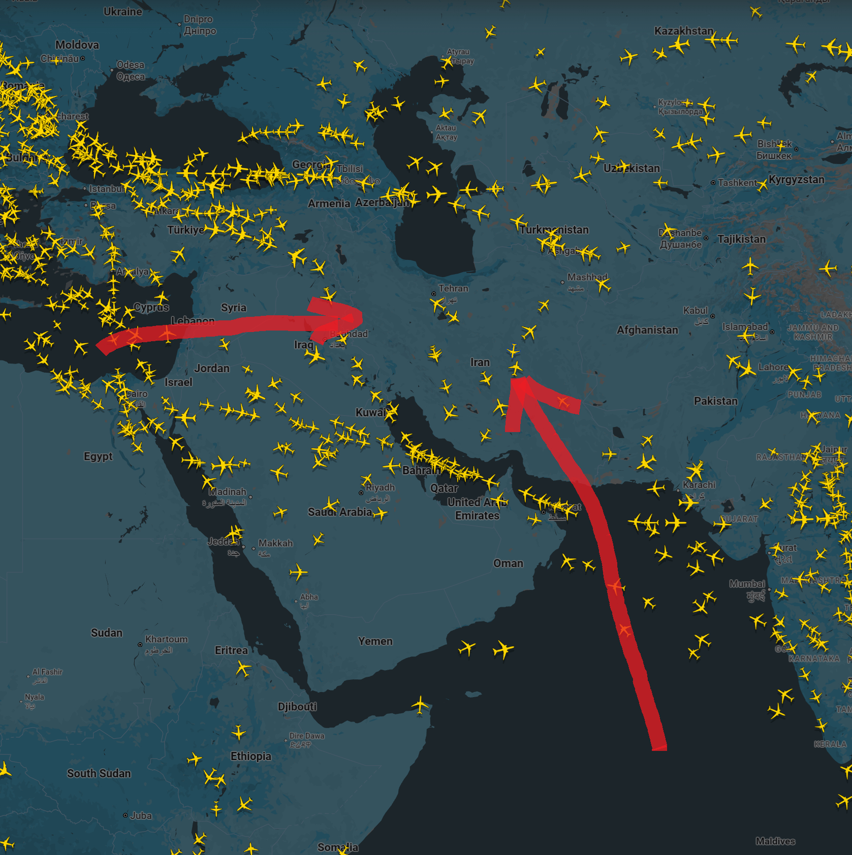 🔻伊拉克、叙利亚方向和印度洋方向都可以飞,影响不大。🔻图2粗略示意,不一定准