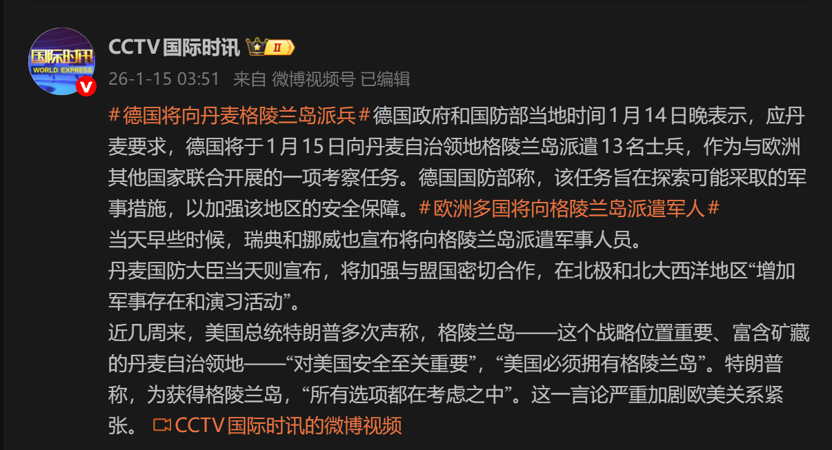 🔻我以为德国派13个人去格陵兰已经是最菜的了。🔻结果不是。🔻挪威派了2个人去格陵兰。热点现场海外新鲜事特朗普称无论如何都要拿下格陵兰岛