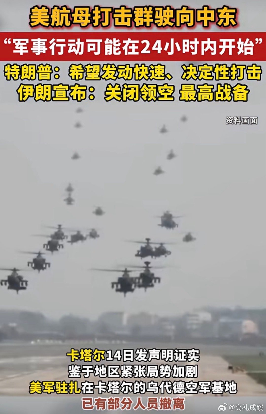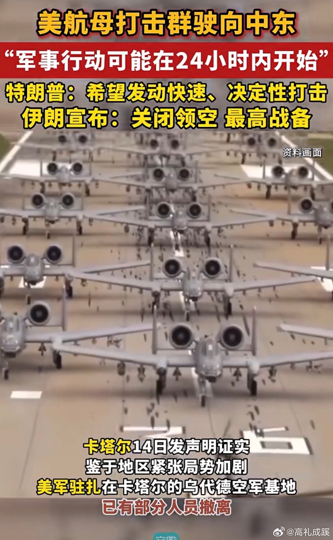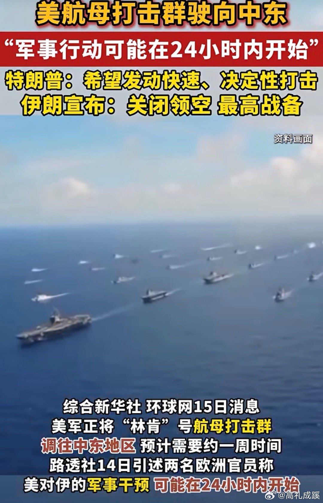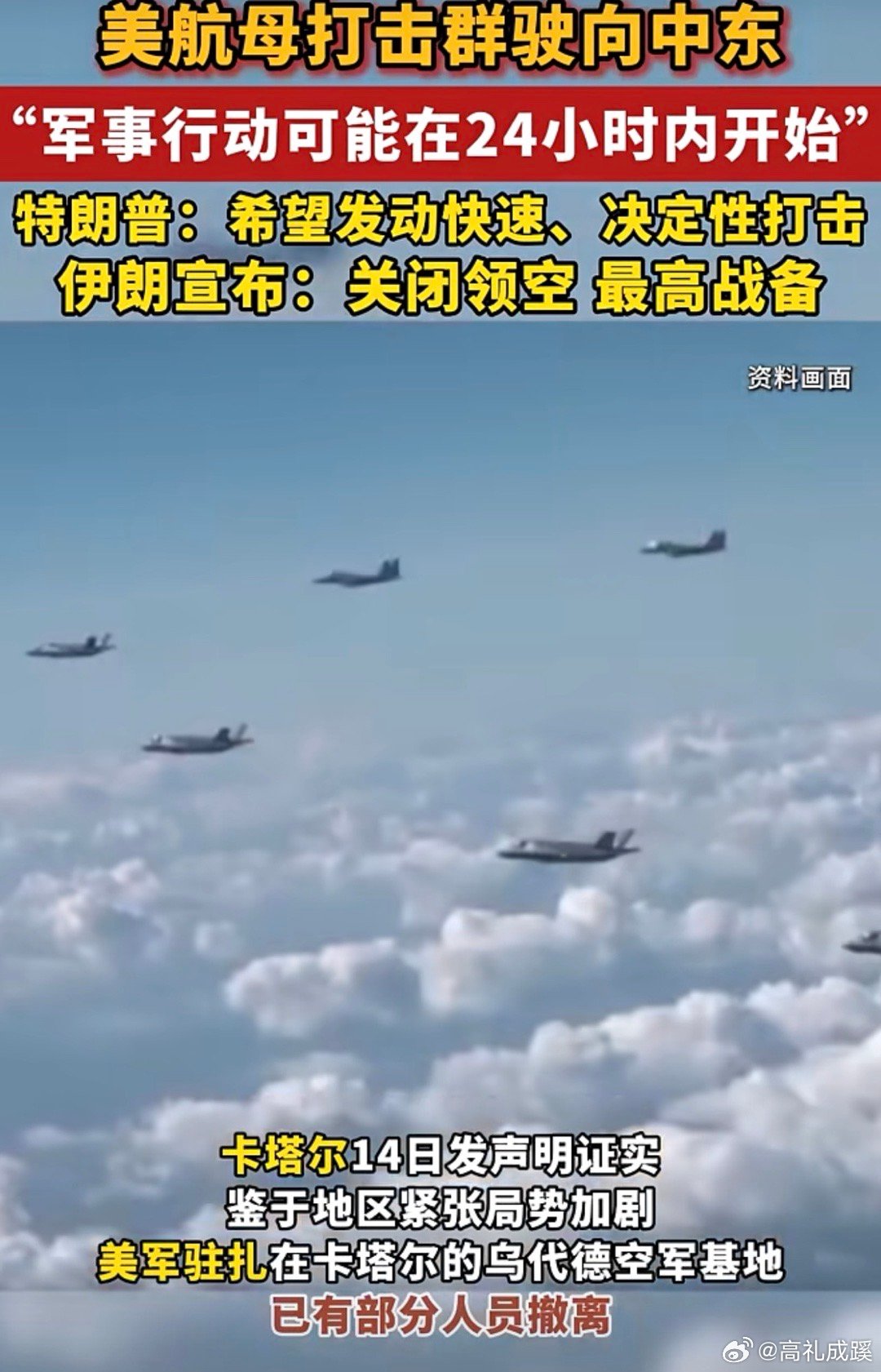 美航母打击群驶向中东“军事行动可能在24小时内开始”特朗普:希望发动快速、决定性打击 伊朗宣布:关闭领空 最高战备 !