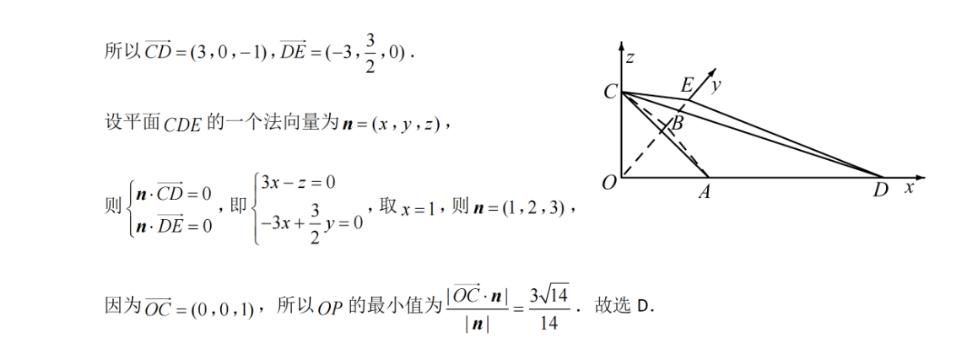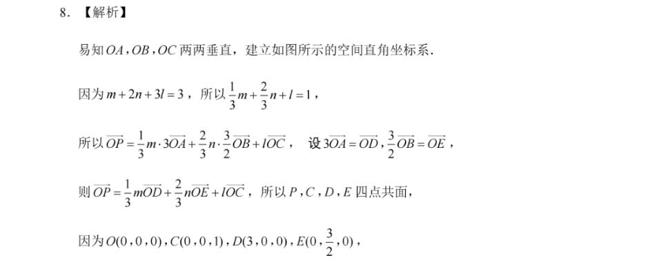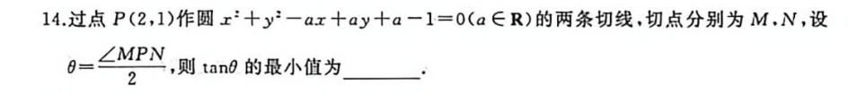 山东名校考试联盟高二上期中检测数学试题压轴单选题第8题,考查空间直角坐标系,四点共面的条件,问题转化为求平面外一点到平面距离,就是所求的最小值,压轴填空题第14题,考查正切函数的定义,二次函数的最小值。